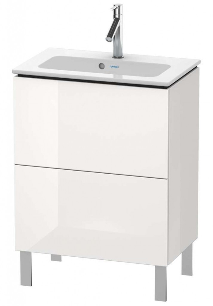 Stojící skříňka Compact pod umyvadlo rozměry: 856 x 620 x 391 mm materiál: vysoce kompaktní třívrstvá DTD, na obou stranách slisovaná s laminátem (HPL), hrany ABS barva: bílá vysoký lesk materiál vnitřní části: vysoce kompaktní třívrstvá DTD, oboustranně tvrzená melaminovou pryskyřicí, barva diamantově černá 2 x zásuvka, horní zásuvka s výřezem pro sifon a krytkou sifonu prostor uvnitř zásuvek je volný, neobsahuje vnitřní rozdělovací moduly Tip-on technologie pro dotykové samočinné otevírání instalace: k postavení na podlahu, podstavné nožičky jsou nutné pro instalaci skříňky (vhodné typy naleznete v souvisejících výrobcích) sifon šetřící místo není součástí balení Ilustrativní foto, podstavné nožičky a umyvadlo nejsou součástí dodávky, je třeba objednat samostatně.