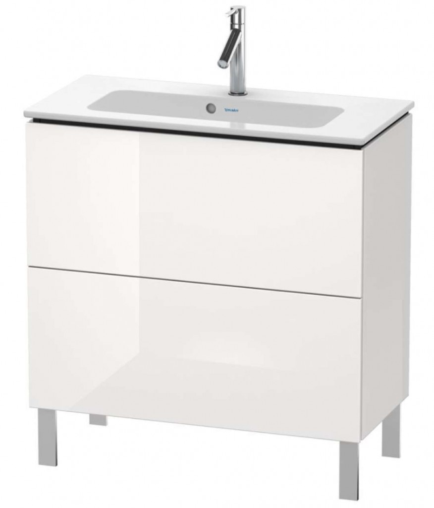 Stojící skříňka Compact pod umyvadlo rozměry: 856 x 820 x 391 mm materiál: vysoce kompaktní třívrstvá DTD, na obou stranách slisovaná s laminátem (HPL), hrany ABS barva: bílá vysoký lesk materiál vnitřní části: vysoce kompaktní třívrstvá DTD, oboustranně tvrzená melaminovou pryskyřicí, barva diamantově černá 2 x zásuvka, horní zásuvka s výřezem pro sifon a krytkou sifonu prostor uvnitř zásuvek je volný, neobsahuje vnitřní rozdělovací moduly Tip-on technologie pro dotykové samočinné otevírání instalace: k postavení na podlahu, podstavné nožičky jsou nutné pro instalaci skříňky (vhodné typy naleznete v souvisejících výrobcích) sifon šetřící místo není součástí balení Ilustrativní foto, podstavné nožičky a umyvadlo nejsou součástí dodávky, je třeba objednat samostatně.