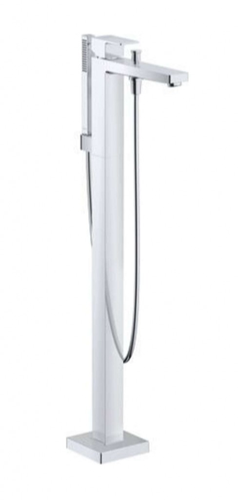 Vanová baterie na podlahu barva chrom výška baterie 850 - 920 mm délka výtoku 232 mm komfortní zóna 780-850 mm pákové ovládání s přepínačem vana/sprcha, s automatickým resetem průtok 27 l/min při tlaku 3 bary keramická kartuše včetně sprchového příslušenství tyčová ruční sprcha tvarovač proudu s nakláněcí funkcí instalace do podlahy na montážní těleso Instalace na montážní těleso, není součástí balení.
