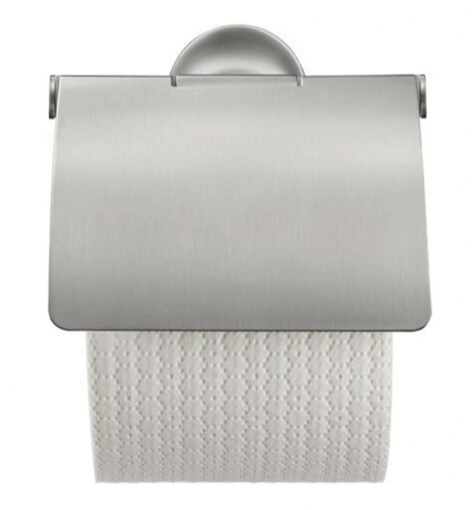 Držák toaletního papíru s krytem barva kartáčovaný nerez rozměry 125 x 83 mm upevňovací materiál součástí balení možnost nalepit nebo přivrtat