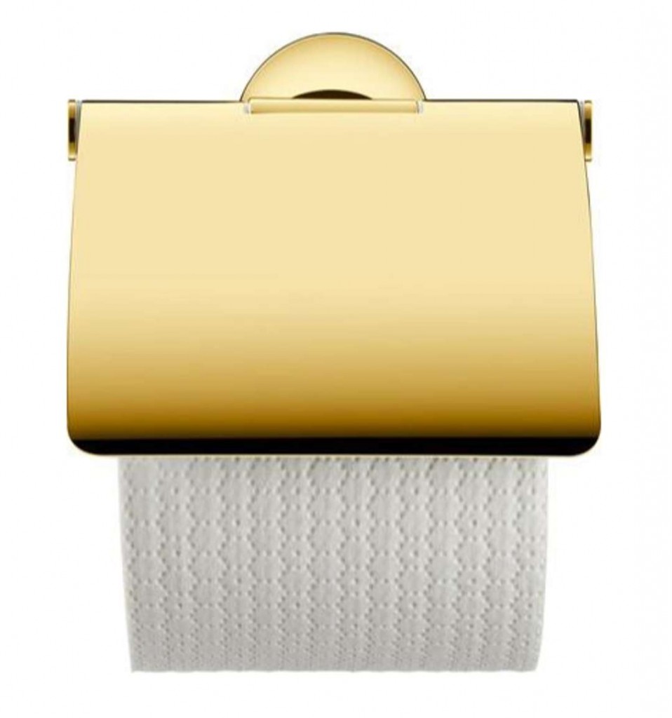 Držák toaletního papíru s krytem barva zlatá rozměry 125 x 83 mm upevňovací materiál součástí balení možnost nalepit nebo přivrtat