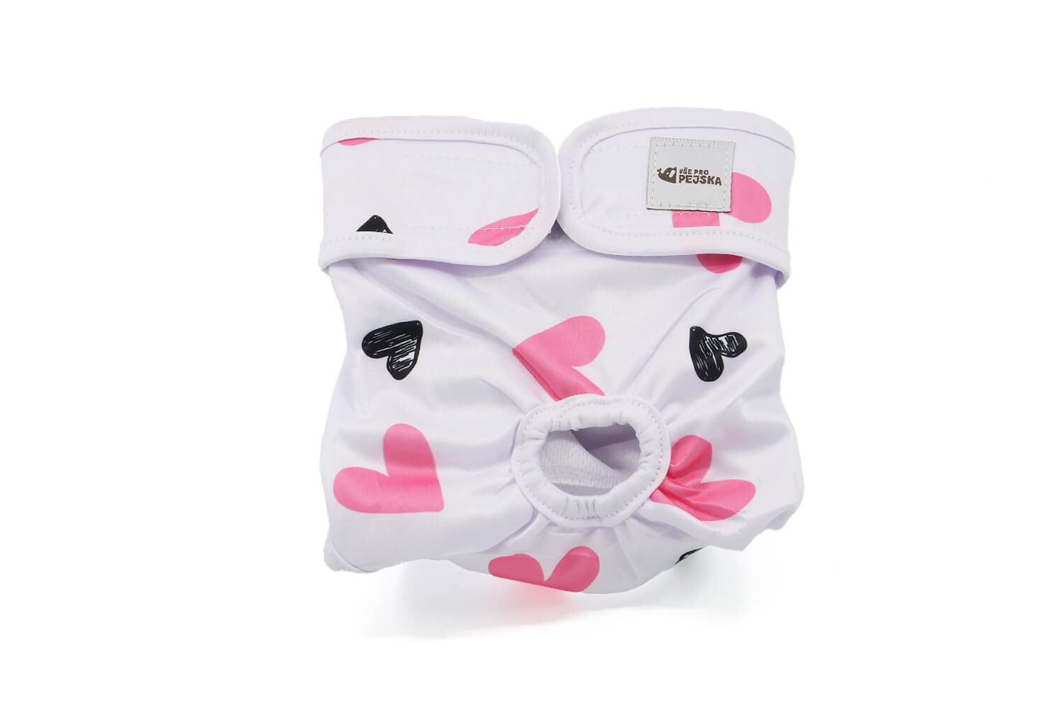 Dusty hárací kalhotky pro psa - vsepropejska.cz Barva: Bíle srdce, Obvod slabin (cm): 36 - 54