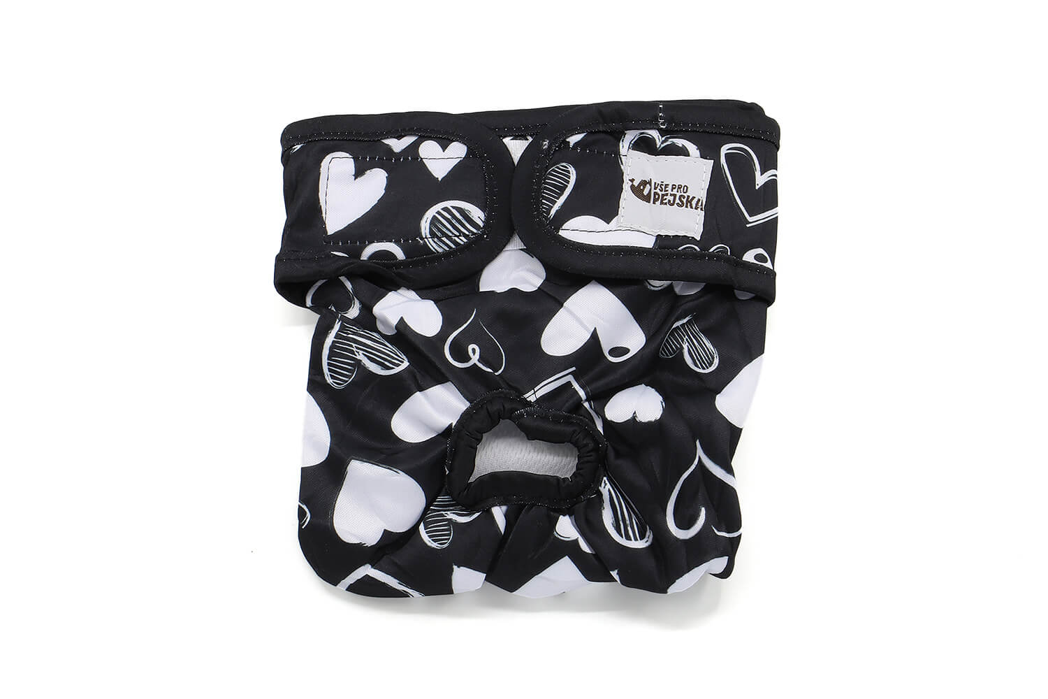 Domů Hobby Chovatelské potřeby Pro psy Ostatní pomůcky pro psy Dusty hárací kalhotky pro psa - vsepropejska.cz Barva: Černé srdce, Obvod slabin (cm): 38 - 64