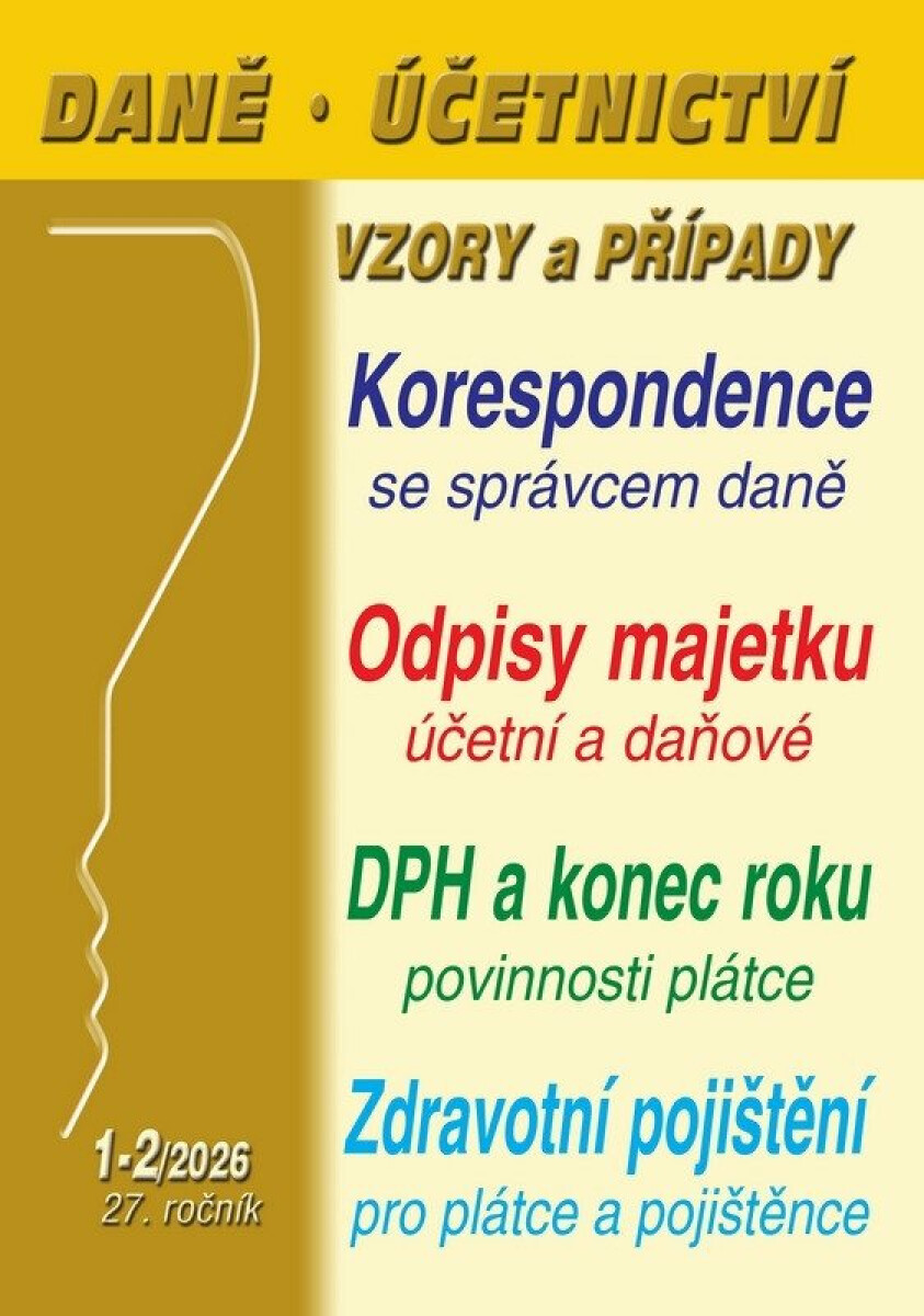 První kapitola se zabývá problematikou účetních a daňových odpisů dlouhodobého majetku. Vysvětluje rozdíl mezi účetními a daňovými odpisy a zabývá se dopadem tohoto rozdílu na základ daně. Zabývá se také problematikou metod a forem odpisování. Je doplněn příklady. V rámci druhé kapitoly se pokusíme projít daňovým řádem s tím, že u vybraných ustanovení se pokusíme naznačit nezávislé vzory písemností, které se k dané pasáži zákona vztahují, a které by mohly býti názornou ukázkou, jak by mohla například vypadat korespondence v podobě žádostí, udělení plné moci, opravného prostředku, sdělní, oznámení, návrhu či podnětu. V daňovém přiznání za poslední zdaňovací období je plátce povinen vyznačit kód zdaňovacího období pro následující kalendářní rok a tím prakticky oznámit správci daně případnou změnu zdaňovacího období pro příští kalendářní rok. Novelou zákona o DPH se zvýšil pro rok 2025 limit obratu v tuzemsku, od něhož může plátce změnit délku zdaňovacího období z kalendářního měsíce na kalendářní čtvrtletí. V právní úpravě zdravotního pojištění dochází k datu 1. ledna 2026 ke změnám jak přímo v zákonech zdravotního pojištění, tak v související právní úpravě, tedy i s dopady do zdravotního pojištění.
