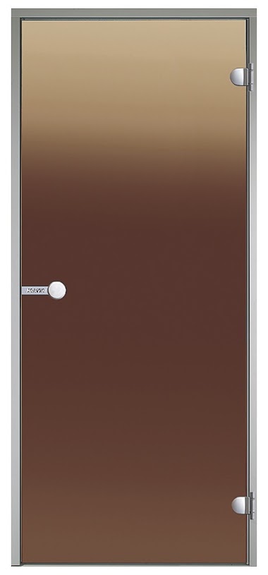Skleněné dveře HARVIA s hliníkovým rámem jsou stylovým vstupem do parní sauny. Dveře se vyrábí v různých rozměrech. Dveře mohou být opatřeny systémem dovírání buďto za pomocí válečku nebo magnetu.