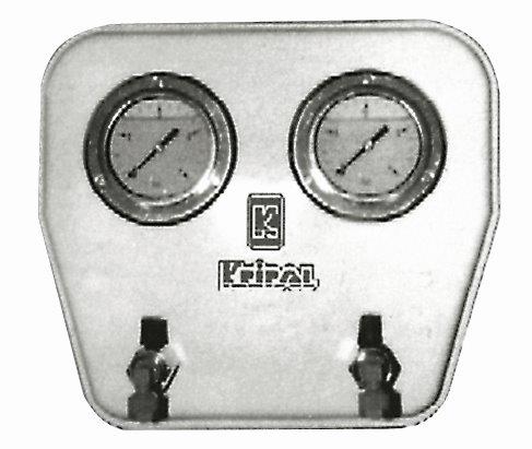 Dvojitý horizontální panel s dvěma glycerinovými manometry usazenými vodorovně na polyesterové základně. Určeno pro měření tlaku ve velkých komerčních filtrech. Připojení : plastovou hadičkou 6/4mm. Vybaveno dvěma odběrnými kohoutky.