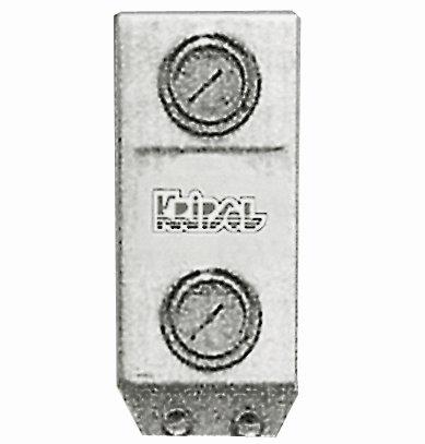 Dvojitý vertikální panel s dvěma glycerinovými manometry usazenými svisle na polyesterové základně. Určeno pro měření tlaku ve velkých komerčních filtrech. Připojení : plastovou hadičkou 6/4mm.