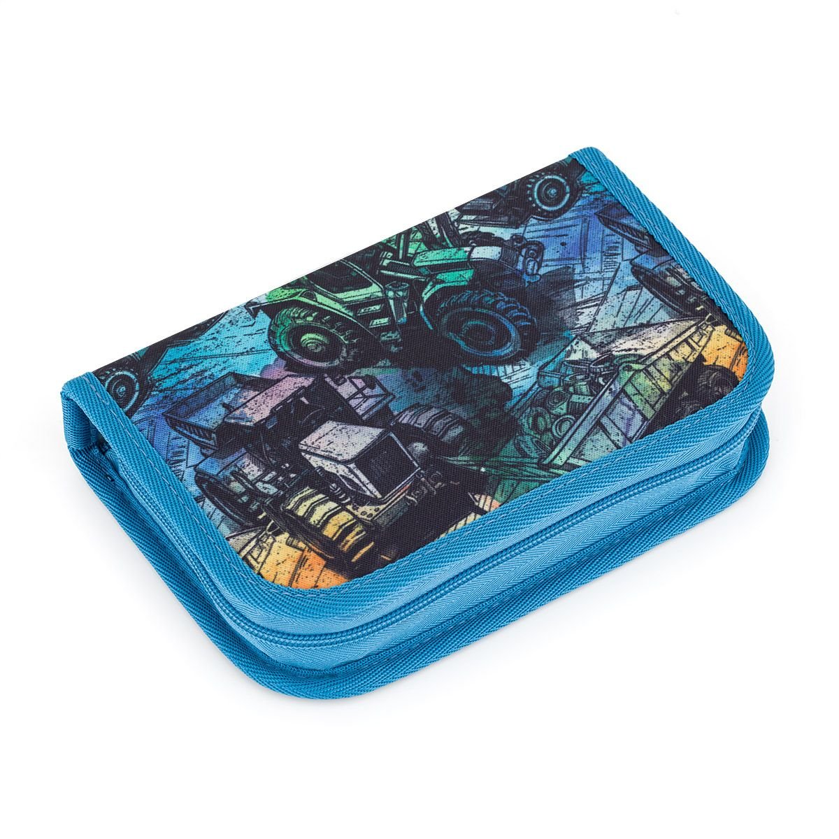 Jednopatrové školní pouzdro se dvěma klopami. Díky gumovým úchytům se do nich vejde celkem dvacetjedna pastelek, tužek a fixek. Tři širší úchyty poslouží na pravítko, kružítko či nůžky. Dva větší na gumu a ořezávátko. Penál je polstrovaný, takže spolehlivě ochrání všechny psací potřeby. Zapínání je řešeno kvalitními zipy s velkými taháčky. Ty umožňují dětem snadnější manipulaci. Pod klopou z průhledné folie najdete rozvrh hodin, druhá poslouží třeba i na taháky. ???? BONUS: Kreslení povoleno! Vnitřní podšívka pouzdra je vyrobena z šedé látky s natištěnými obrázky. Ty si mohou děti vybarvit dle nálady a chuti. Naše malé doporučení - pro vybarvování budou lepší pastelky, fixy by se mohly rozpíjet. POZOR: Neperte penál v pračce! Je vyztužen papírem a ten praní rozhodně nepřežije.