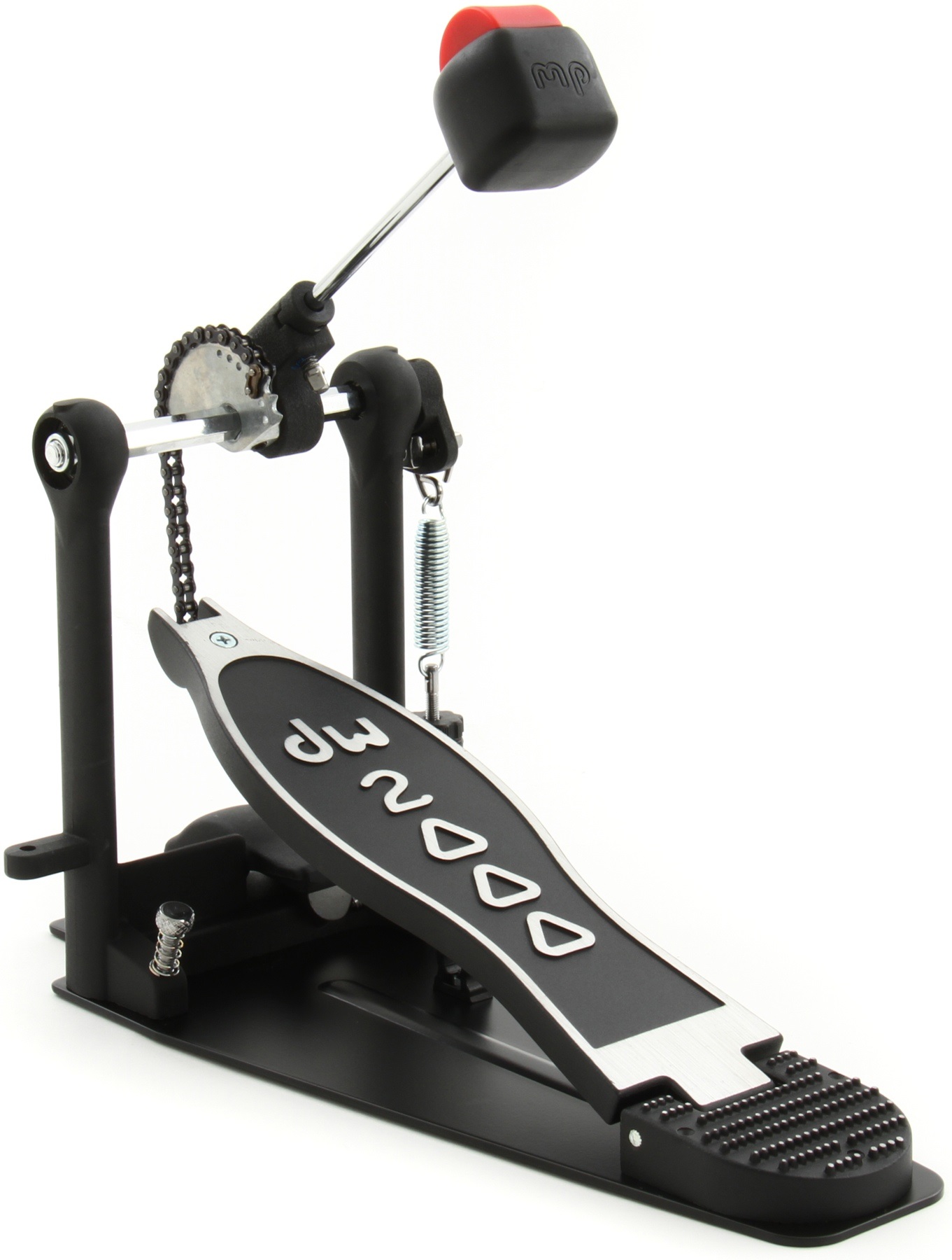 Pedál k basovému bubnu DW 2000 Tento single pedál k basovému bubnu využívá jednoduchého řetězového převodu. Vyroben je z hliníku a oceli, jeho beater umožňuje pracovat s filcovým nebo plastovým povrchem a samozřejmostí je možnost nastavení pro přizpůsobení se Vašim potřebám. Technické údaje: , Převod: Jednoduchý řetěz , Základna: Pevná , Beater: Oboustranný (Filc/Plast) , Obal součástí: Ne