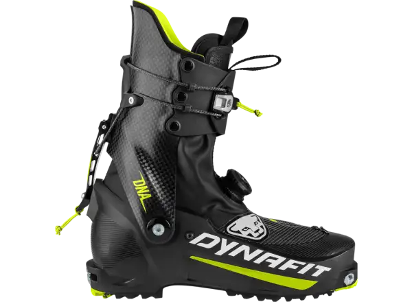 Ski touringové unisex boty DNA jsou první volbou závodních skialpinistů. Hlavními výhodami jsou hmotnost 800 gramů, skořepinová konstrukce z karbonových vláken a inovativní systém zavírání Ztělesnění rychlosti a nejvyššího výkonu s maximální optimalizací hmotnosti, to je DNA. Skořepina je vyrobena z vysoce výkonného kompozitu Grilamid a karbonových vláken, zatímco komín z čistých karbonových vláken zaručuje nejlepší možnou tuhost. S nově vyvinutým systémem Race Look System můžete přecházet mezi režimy lyžování a chůze jednou rukou. Systém se skládá z páky na zadní straně komínu boty která je integrována pomocí kabelového systému, který pak komín otevírá nebo zavírá otočením páky. Patentovaný systém zavírání na háčky zajišťuje komín během několika sekund pevným cvaknutím do požadované polohy. V kombinaci s revolučním systémem Twist Fit System pro ideální uchycení paty a bezpečné umístění přední části boty se DNA Boot může pochlubit tuhostí a sjezdovým výkonem posunutým na novou úroveň. Volnost pohybu +/- 60 stupňů ohybu komínu dopředu a dozadu šetří energii a umožňuje pohybovat se efektivněji ve stoupání. DNA je dodávána s minimalistickou vložkou Bikini Liner. Bikini vložka při svých 110 gramech přesně obepne nohu a podpoří tak ideální kontrolu při rychlých sjezdech. Podšívka je tepelně tvarovatelná a lze ji tedy přizpůsobit každé jednotlivé noze.