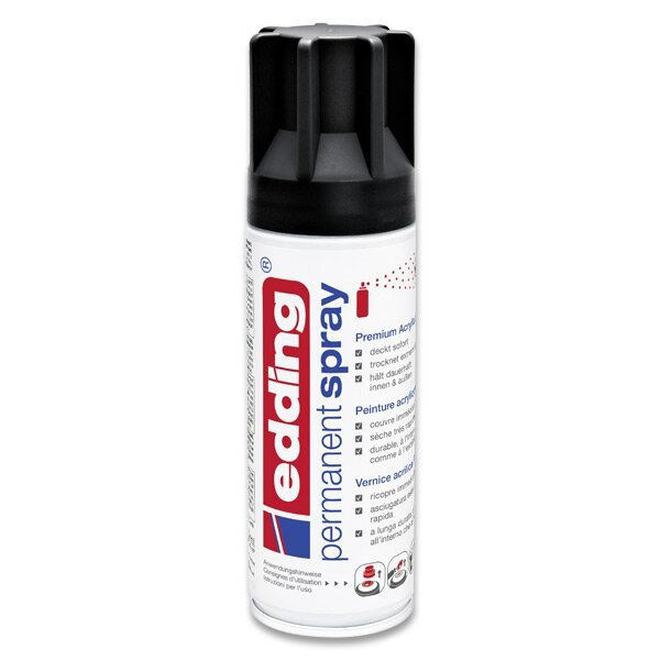 Permanentní spreje edding 5200 obsahují vysoce kvalitní barvu s mimořádnou kryvostí, která extrémně rychle zasychá, nestéká a je trvanlivá i v exteriéru. Pomocí trendy barev proměníte staré fádní předměty na nové, originální dekorace do bytu, na balkon i na zahradu. Spreje jsou vhodné pro všechny domácí řemeslné práce – na dřevo, kámen, kov, sklo, košíkářské výrobky, keramiku i plast. Jsou určené i pro kreativní využití na malířské plátno, taktéž jsou vhodné pro kutily a řemeslníky. Použití sprejů je velmi jednoduché. Nejprve je třeba zkontrolovat, že povrch, který má být ošetřen, je čistý, suchý, bez rzi a mastnoty. Sprej je nutné 3 minuty protřepávat, a až poté nanést barvu ze vzdálenosti 25 cm. Povrch zaschne do 3 minut, zcela suchý bude do 30 minut. Jedna lahev vystačí k pokrytí až 1 m2. Objem: 200 ml. Pro dosažení nejlepších výsledků na savých površích (jako např. dřevo, plátno, tapeta), potahových plastových součástech nebo polystyrenu, používejte pouze s podkladovým sprejem značky edding určeným na plasty, na polystyren nebo se sprejem pro univerzální použití.