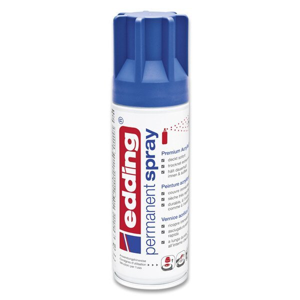 Permanentní spreje edding 5200 obsahují vysoce kvalitní barvu s mimořádnou kryvostí, která extrémně rychle zasychá, nestéká a je trvanlivá i v exteriéru. Pomocí trendy barev proměníte staré fádní předměty na nové, originální dekorace do bytu, na balkon i na zahradu. Spreje jsou vhodné pro všechny domácí řemeslné práce – na dřevo, kámen, kov, sklo, košíkářské výrobky, keramiku i plast. Jsou určené i pro kreativní využití na malířské plátno, taktéž jsou vhodné pro kutily a řemeslníky. Použití sprejů je velmi jednoduché. Nejprve je třeba zkontrolovat, že povrch, který má být ošetřen, je čistý, suchý, bez rzi a mastnoty. Sprej je nutné 3 minuty protřepávat, a až poté nanést barvu ze vzdálenosti 25 cm. Povrch zaschne do 3 minut, zcela suchý bude do 30 minut. Jedna lahev vystačí k pokrytí až 1 m2. Objem: 200 ml. Pro dosažení nejlepších výsledků na savých površích (jako např. dřevo, plátno, tapeta), potahových plastových součástech nebo polystyrenu, používejte pouze s podkladovým sprejem značky edding určeným na plasty, na polystyren nebo se sprejem pro univerzální použití.