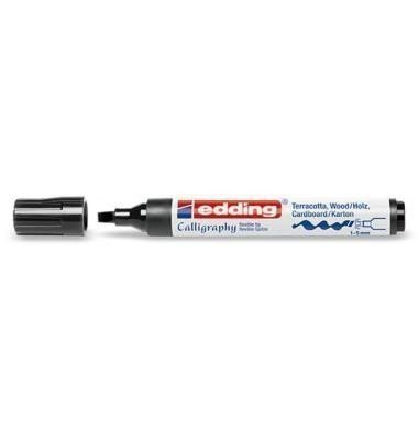Kaligrafický popisovač 1455, černý použijte pro permanentní ozdobné psaní a zdobení drsných nebo porézních povrchů. Ideální je pro psaní a kreslení na terakotu, dřevo, papír, plátno. Popisovač je vybaven speciálním kaligrafickým hrotem, s nímž je možné tvořit od jemných až po široké tahy. Vytváří šířku stopy v rozsahu od 1 do 5 mm. Obzvláště vhodný je pro studenty kaligrafie, doporučujeme ho ale i pro jednoduchou domácí kreativu. Barevný pigmentový inkoust je rychleschnoucí, extrémně odolný vůči světlu a odolný vůči rozmazání, opotřebení a povětrnostním vlivům. Neprosakuje skrz papír.