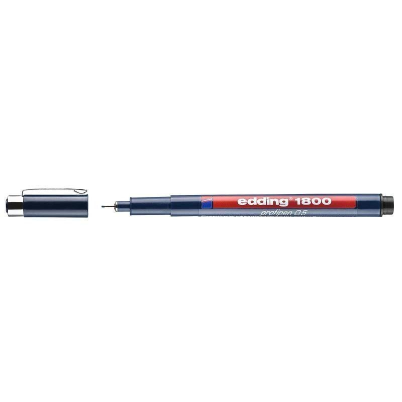 Popisovač EDDING 1800, černý s šíří hrotu 0,5 mm má velmi jemný hrot pro vynikající výsledky. Pro psaní a skicování, např. pro práci s technickou dokumentací. Použijte ho ale i pro Vaše tvoření ve volném čase. Pigmentový inkoust, který vyniká zejména pro svou stálobarevnost a vysokou trvanlivost. Odolný vůči rozmazání a vodě. Díky speciálnímu inkoustu nedochází k prosakování skrz papír. Rychleschnoucí a neutrální vůně. Má plastový kulatý hrot s kovovým rámečkem. Víčko fixu má klip pro praktické zachycení, např. k oděvu nebo notesu.