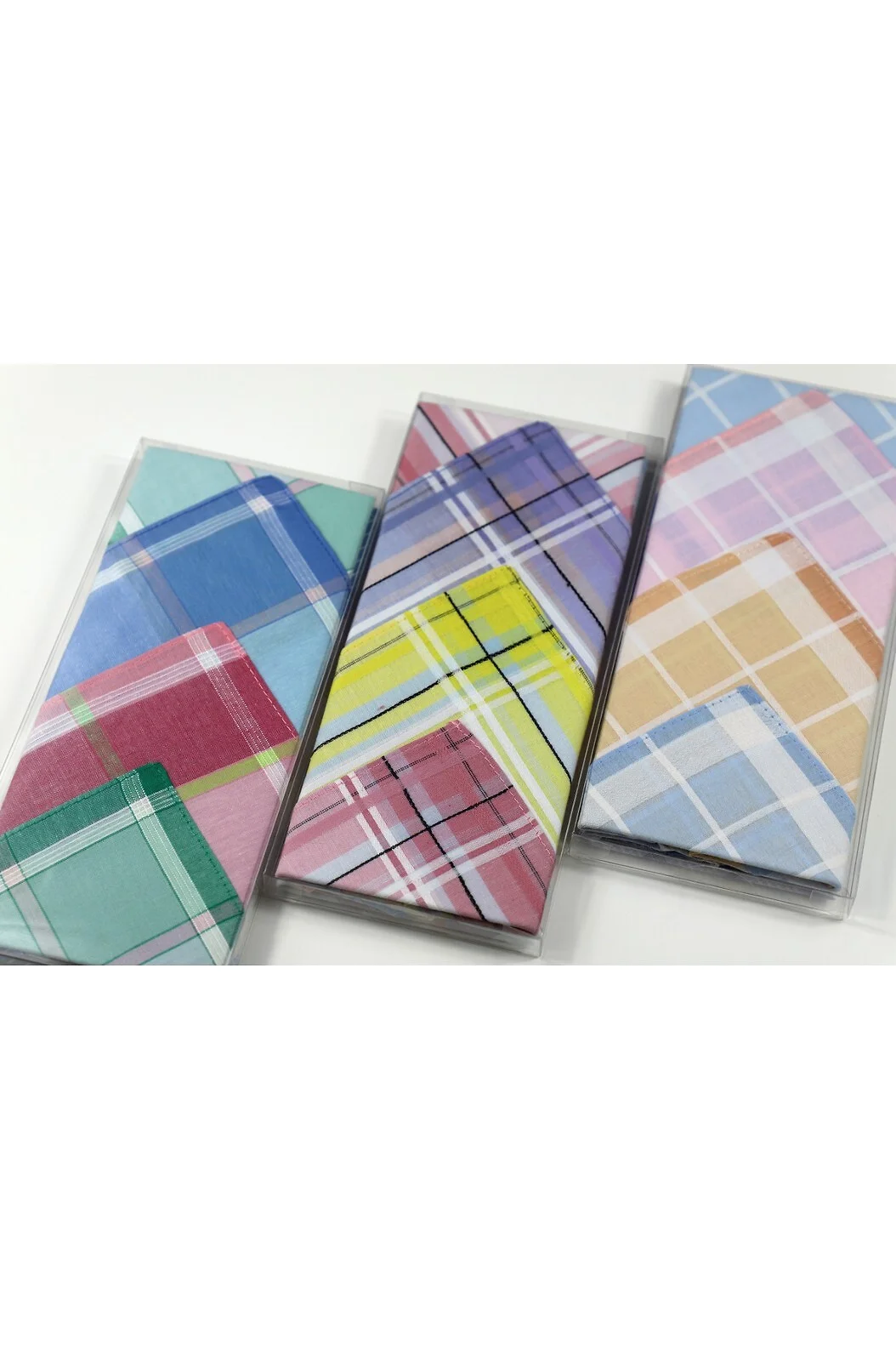 Dámské kapesníky - z jemně tkané bavlny - barevný kostkovaný vzor - baleno po 6 kusech v průhledné krabičce - různé barevné kombinace - velikost 30x30 cm Složení: 100% bavlna
