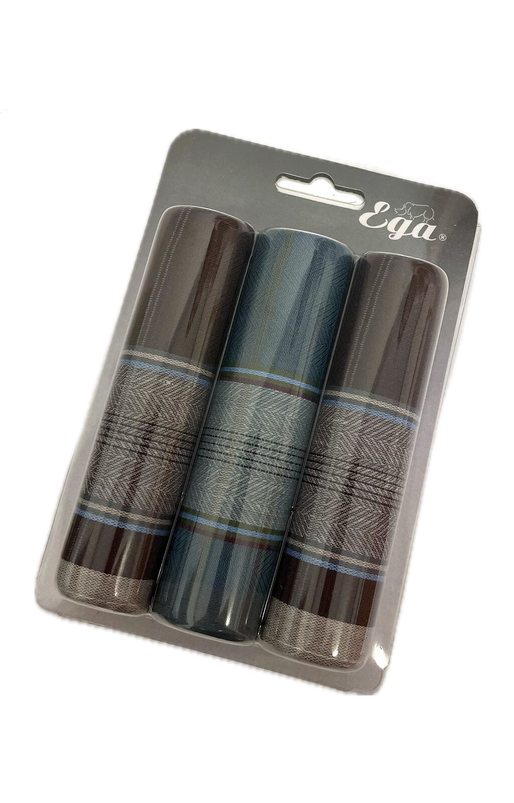 Pánské kapesníky - z jemně tkané bavlny - lemované úzkým plochým švem - balené po třech kusech - velikost 40x40 cm - náhodně vybrané dostupné barvy: béžovo-modro-mentolová; hnědo-marounová; námořnicko-hnědá; námořnicko-modro-hnědá; béžovo-modro-šedá Složení: 100% bavlna