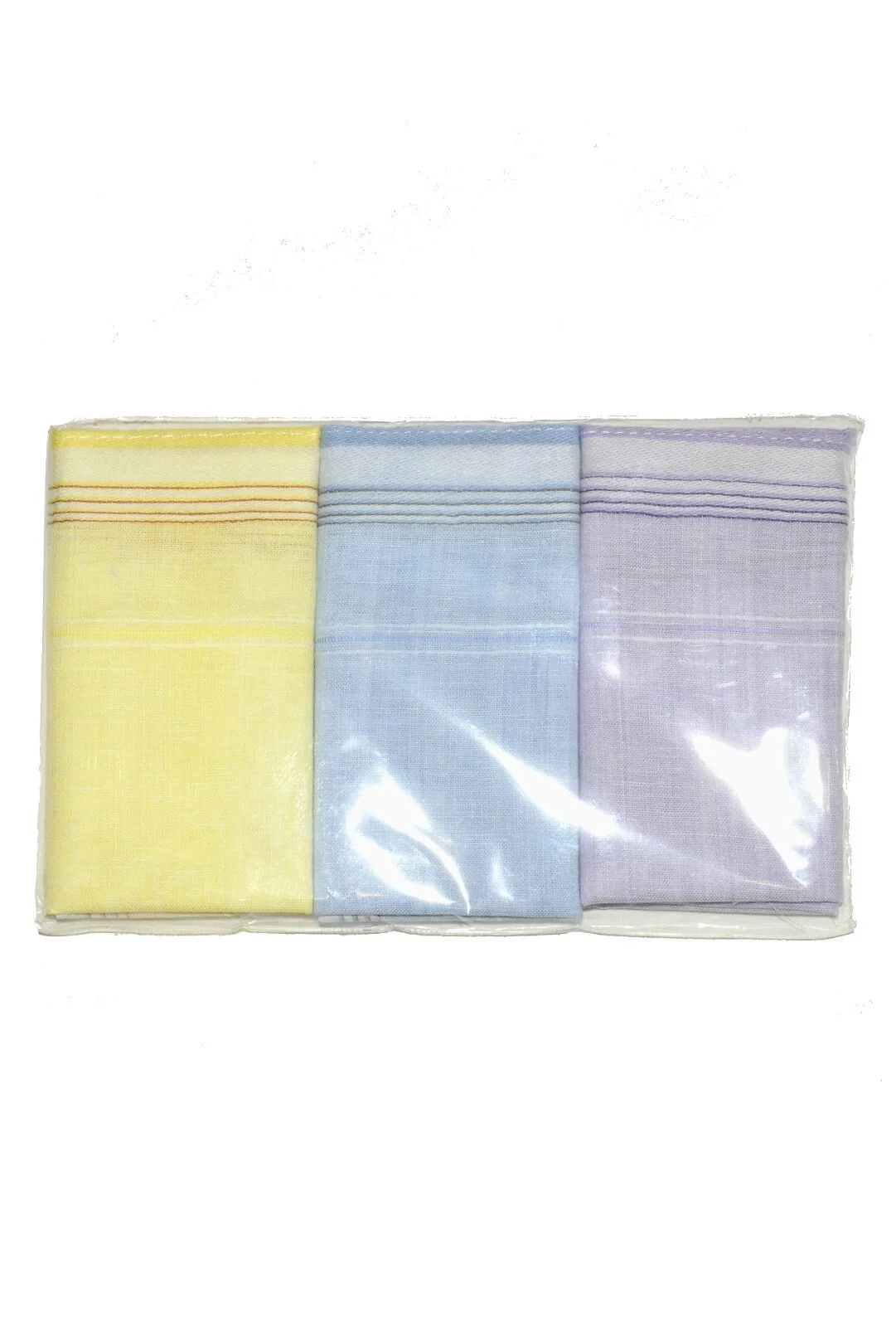 Dámské kapesníky - z hladké, jemně tkané bavlny - lemované úzkým plochým švem - balené po třech kusech v plastovém sáčku - velikost 30x30 cm - balené v různých barevných sadách Složení: 100% bavlna