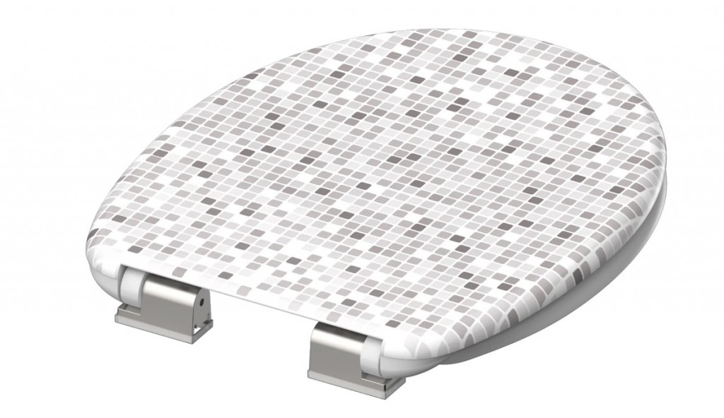 Duroplastové WC sedátko MOSAIC GREY, s automatickým spouštěním Pohodlí a funkce: tiché zavírání díky automatickému spouštění Potištěno na 1 straně Dlouhá životnost: extrémně odolná proti rozbití a poškrábání Snadná údržba: snadné čištění díky hladkému povrchu Standardní rozměry: vhodné pro všechny běžně dostupné toaletní mísy Snadná montáž: včetně veškerého upevňovacího materiálu