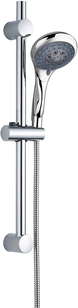 Ruční sprcha s nopkami proti usazování vodního kamene Ruční sprcha: Ø přibližně 12 cm; 5 funkcí sprchy Kovová sprchová tyč, délka: přibližně 67 cm Výškově nastavitelný nástěnný držák Flexibilní kovová sprchová hadice, délka: cca 150 cm Sprchová hadice ½ "(Ø přibližně 1,9 cm) včetně těsnění šetřícího vodu - až 50% úspora vody