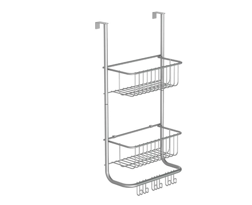 Závěsná police, matná stříbrná závěsná police se dvěma velkými úložnými košíky a 6 háčky Materiál: kov, povrchová úprava práškovou barvou