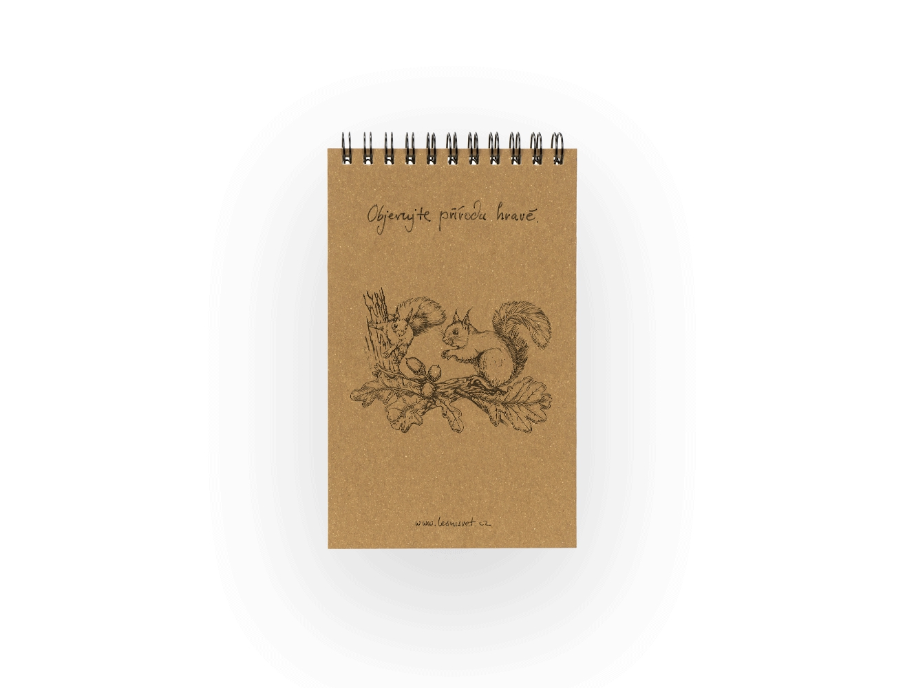 Vytištěno na ekologickém papíře s certifikátem PEFC. Blok má 50 listů, je nelinkovaný a velikost je 100 x 160 mm. Nemá ochranný obal. Autorem kreseb jsou čeští ilustrátoři, obrázky jsou chráněny autorskými právy. Listy bloku jsou z krémově tónovaného papíru s gramáží 80 g/m2 (creamy volumen) a desky z kraftového papíru 450g . Vazba bloku je kroužková, drátěná a je černé barvy. Papír bloku je vhodný na psaní i kreslení pastelkami. Lesní svět = značka s ekologickým certifikátem udržitelného hospodářství PEFC. Všechny výrobky jsou vyrobeny s ohledem na životní prostředí.