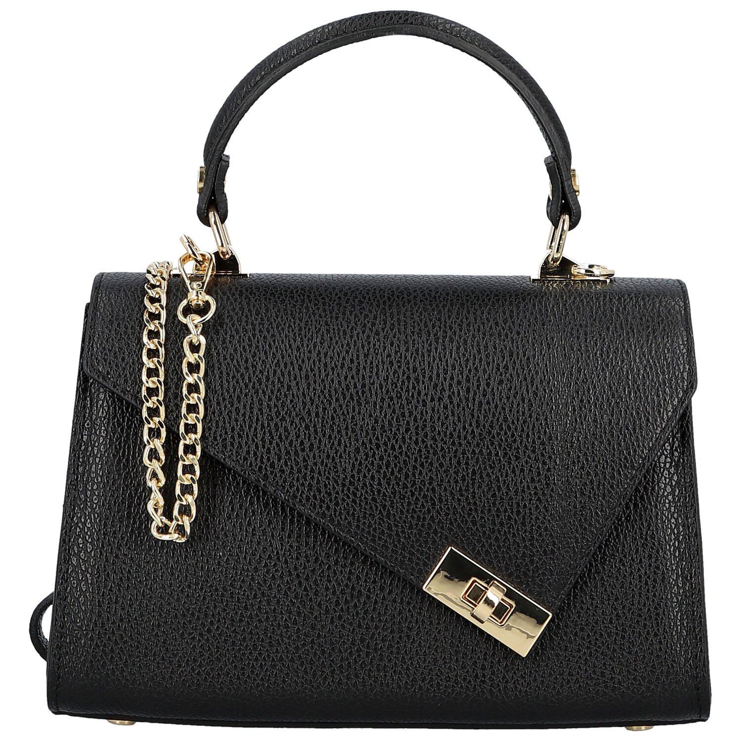 Po otevření se odhalí prakticky členěný vnitřní prostor rozdělený na tři části, z nichž prostřední je uzavíratelná zipem, ideální pro bezpečné uložení cenností. Kabelka má pevné ucho, které dokonale padne do ruky, a pro variabilní nošení je doplněna o dlouhý zlatý řetízek, který lze snadno připnout.