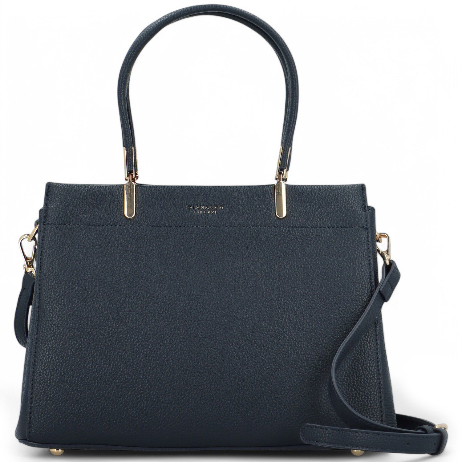 Tato kabelka působí velmi elegantně. Její koženkový materiál je jemně strukturovaný a velmi příjemný na dotek. Díky pevné konstrukci drží kabelka pevně svůj tvar, který se ve spodní části rozšiřuje. Kabelka má i kovové nožičky proti poškrábání.