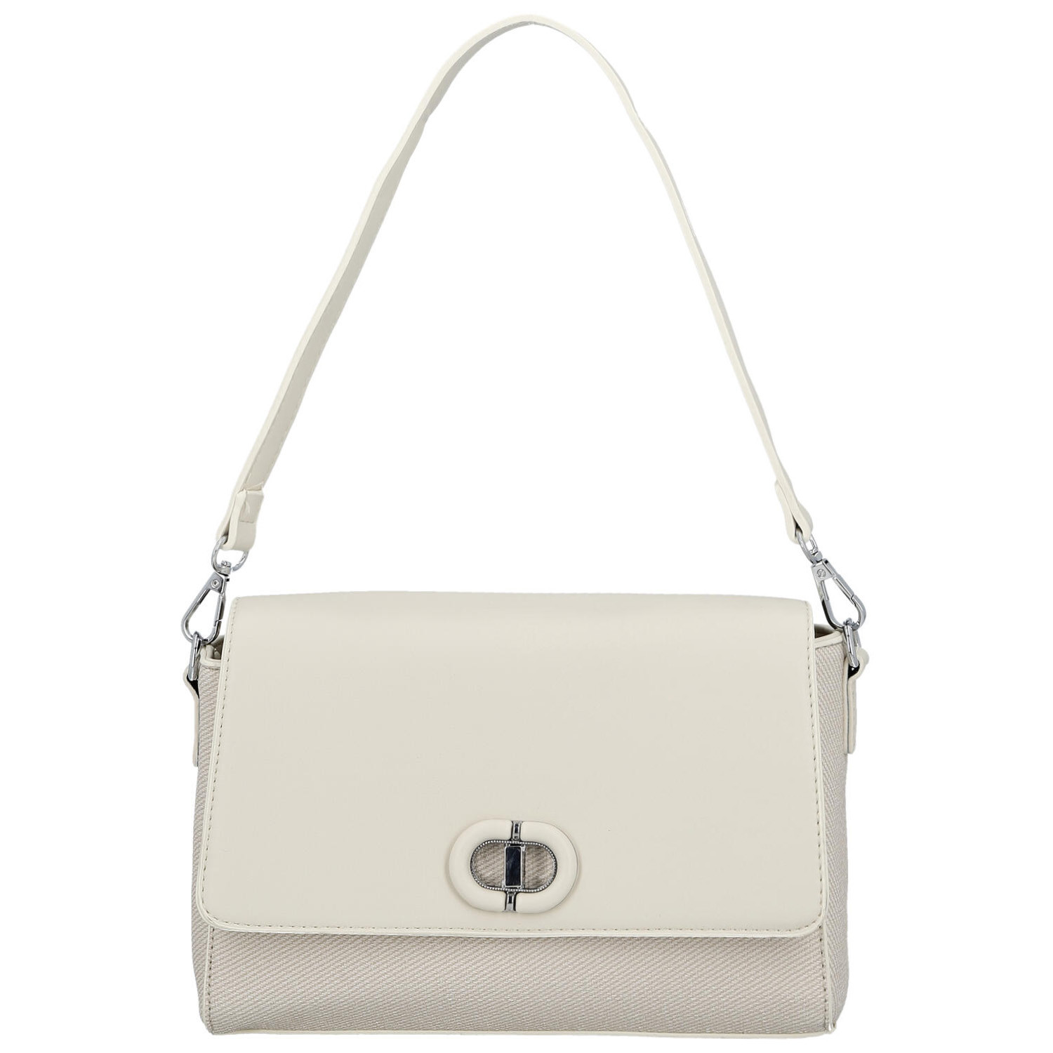 Kabelka zaujme na první pohled svým minimalistickým designem a jemně strukturovaným povrchem. Klopa s dekorativním kovovým zapínáním dodává modelu osobitý charakter, zatímco pevný tvar drží elegantní siluetu po celý den.