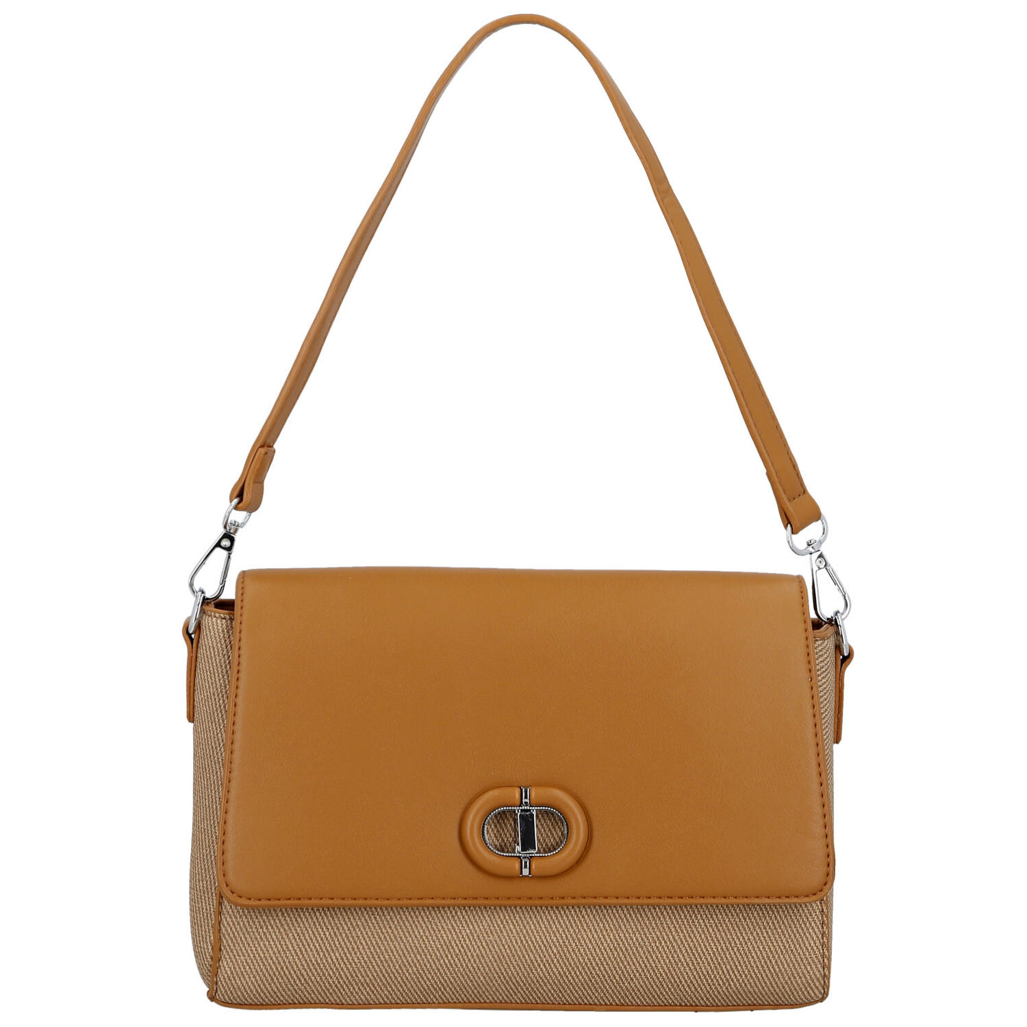 Kabelka zaujme na první pohled svým minimalistickým designem a jemně strukturovaným povrchem. Klopa s dekorativním kovovým zapínáním dodává modelu osobitý charakter, zatímco pevný tvar drží elegantní siluetu po celý den.