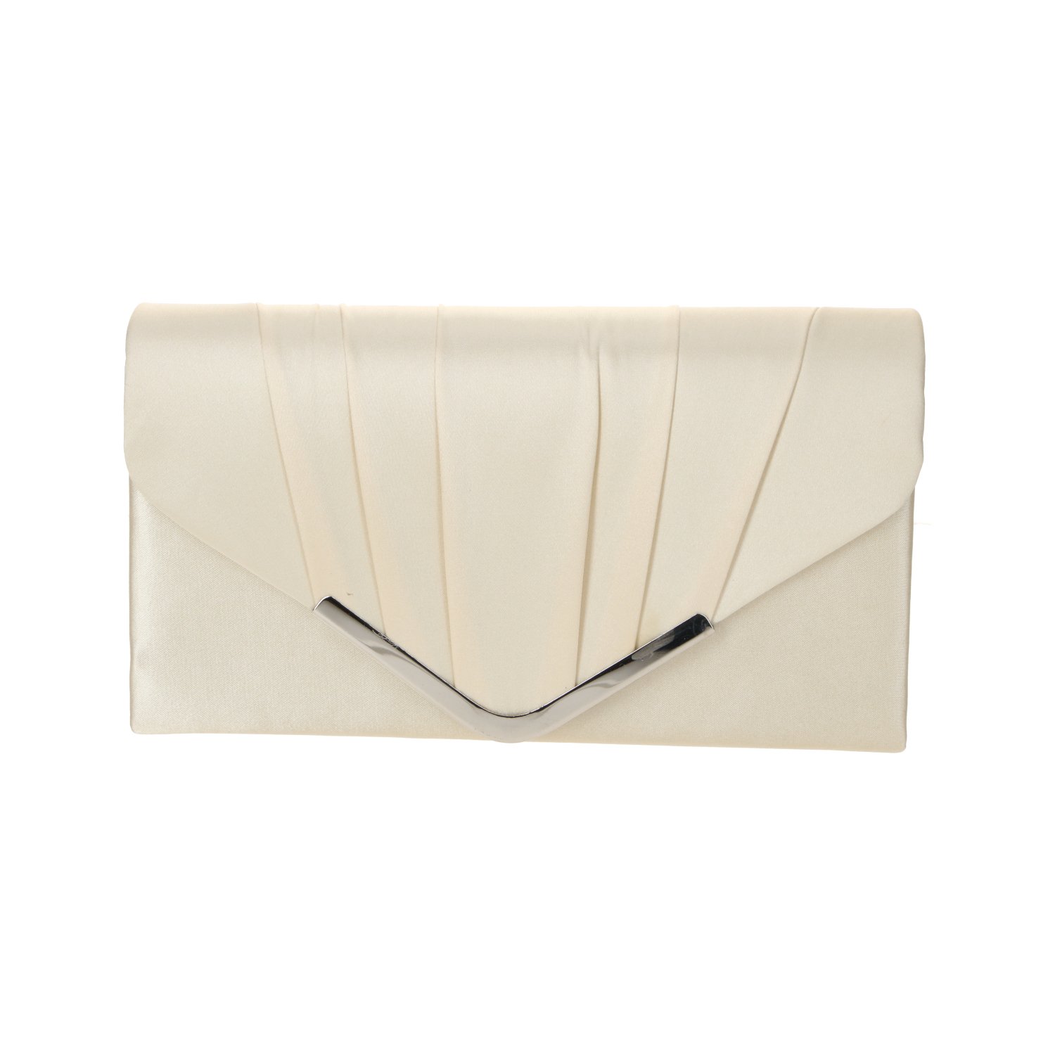 Elegantní společenská kabelka je perfektním doplňkem pro slavnostní příležitosti. Díky luxusnímu saténovému vzhledu a stylovému řasení na přední klopě působí velmi sofistikovaně a ženskě. Moderní kovový detail ve tvaru písmene V dodává kabelce jedinečný a výrazný charakter.