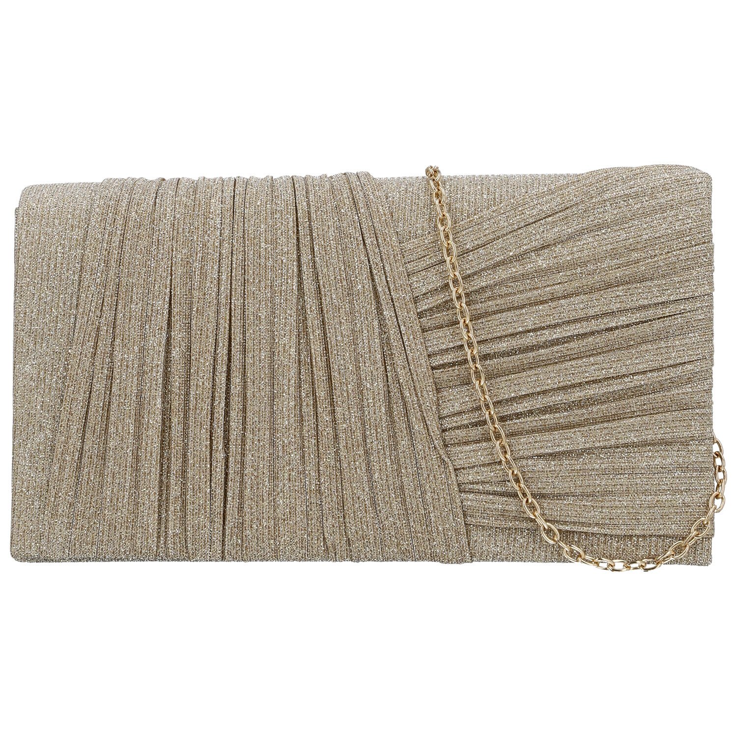 Klopa je na magnetický druk a k dispozici je i odnímatelný jemný řetízek stříbrné barvy k nošení přes rameno. Povrch psaníčka je z příjemné nařasené textilie a přední část je krásně nařasená.