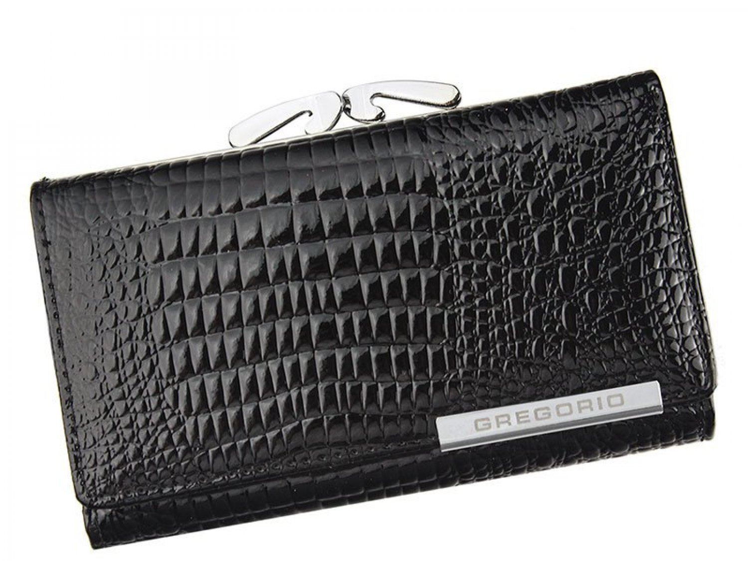 Tato střední kožená peněženka bude slušet dámám, které mají rády eleganci. Peněženka je ušita z lakované kůže s hadím vzorem.Na zadní straně má rámečkovou komoru na mince, která je rozdělená na dvě části a v zadní části pak ještě jeden prostor na vaše doklady na druk.