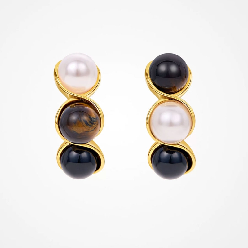 Tyto elegantní náušnice propojují jemnost pravé sladkovodní perly s teplým, zemitým leskem tygřího oka. Výsledkem je harmonické spojení ženské něžnosti a vnitřní síly – v každém detailu promyšlené, působivé a přitom stále přirozené.Zlatě tónovaný kov podtrhuje přirozenou krásu obou kamenů a dodává celku nádech luxusu. Díky vertikálnímu uspořádání kamenů náušnice opticky prodlužují krk a dodávají tváři jemný jas. Působí výrazně, ale nepůsobí rušivě – právě naopak. Tento šperk ocení každá žena, která hledá harmonii mezi ženskostí a elegancí. Díky nadčasovému provedení se náušnice hodí pro každodenní nošení i slavnostní příležitosti. Jsou dokonalou volbou pro ženy s vytříbeným vkusem a smyslem pro detail. 💡 Tip: Náušnice ideálně doplní další doplňky s tygřím okem nebo perlový náramek – vytvoříte tak stylový, harmonický set.
