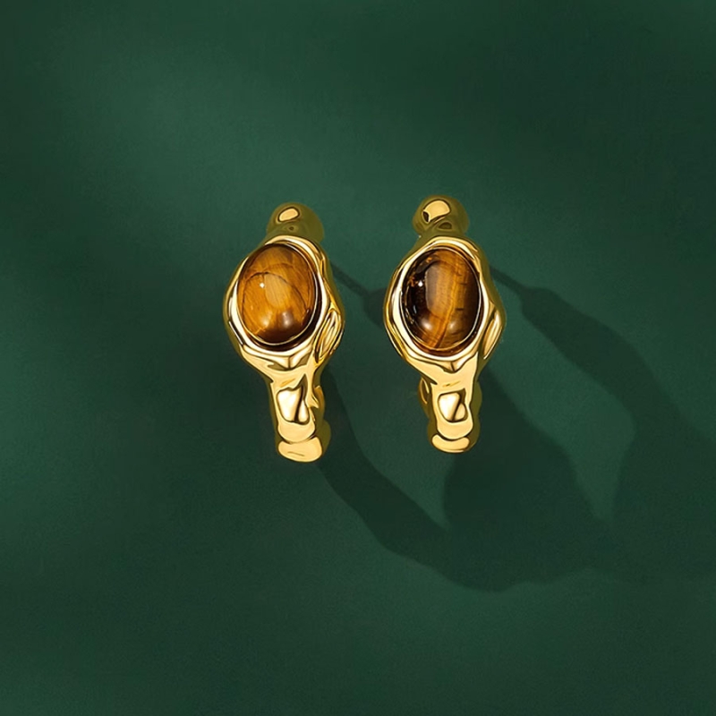 Náušnice s tygřím okem upoutají na první pohled svou výraznou kombinací přírodního minerálu a organického tvaru kovu. Hladce leštěný kámen v teplých odstínech hnědé je zasazen do nepravidelného zlaceného těla, které dodává šperku moderní a zároveň nadčasový charakter.Design připomíná sochařské umění s důrazem na asymetrii a přirozený pohyb, čímž náušnice působí živě a dynamicky. Tygří oko, známé pro svou optickou hloubku a jedinečné zrcadlení světla, se v tomto provedení krásně leskne a mění barvy podle úhlu dopadu světla.Tyto náušnice se hodí k výrazným outfitům v zemitých tónech i k jednoduchému černému oblečení, kterému dodají špetku luxusu a individuality. Jsou ideální pro ženy, které hledají jedinečný doplněk s přírodní energií. 💡Tip: Tygří oko je tradičně považováno za kámen odvahy a vnitřní síly. Vezměte si tyto náušnice na důležité jednání, prezentaci nebo první rande – podtrhnou vaši sebedůvěru i styl.