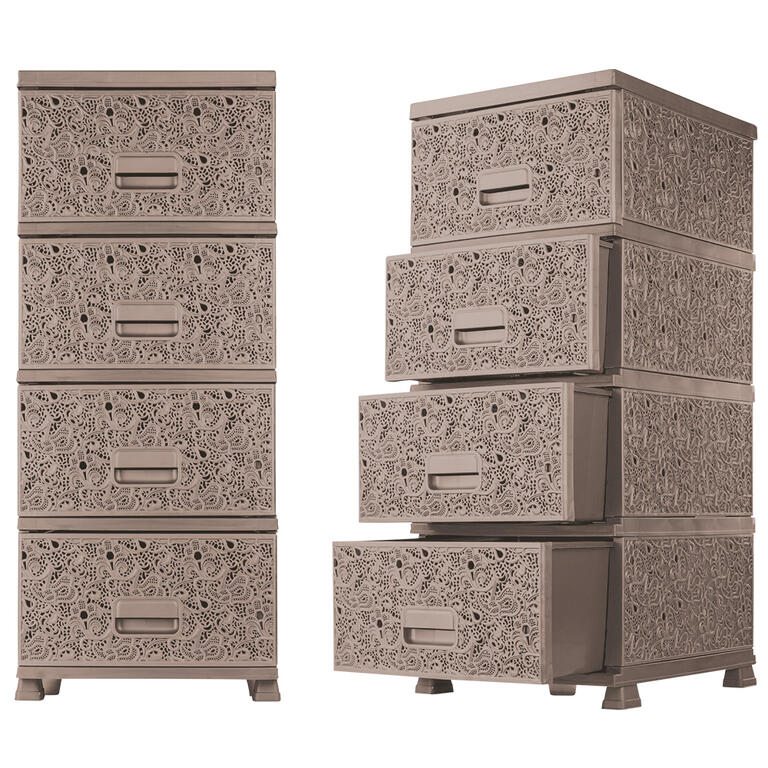 Praktická komoda v barvě kávy z odolného a kvalitního plastu od renomovaného výrobce se hodí do jakékoliv místnosti. Na rozdíl od dřevěného nábytku skvěle snáší i vlhké prostředí, výborně se tedy hodí i do koupelny. Komoda je vybavena 4 prostornými zásuvkami. Komoda je nenáročná na údržbu - stačí otřít vlhkým hadříkem.