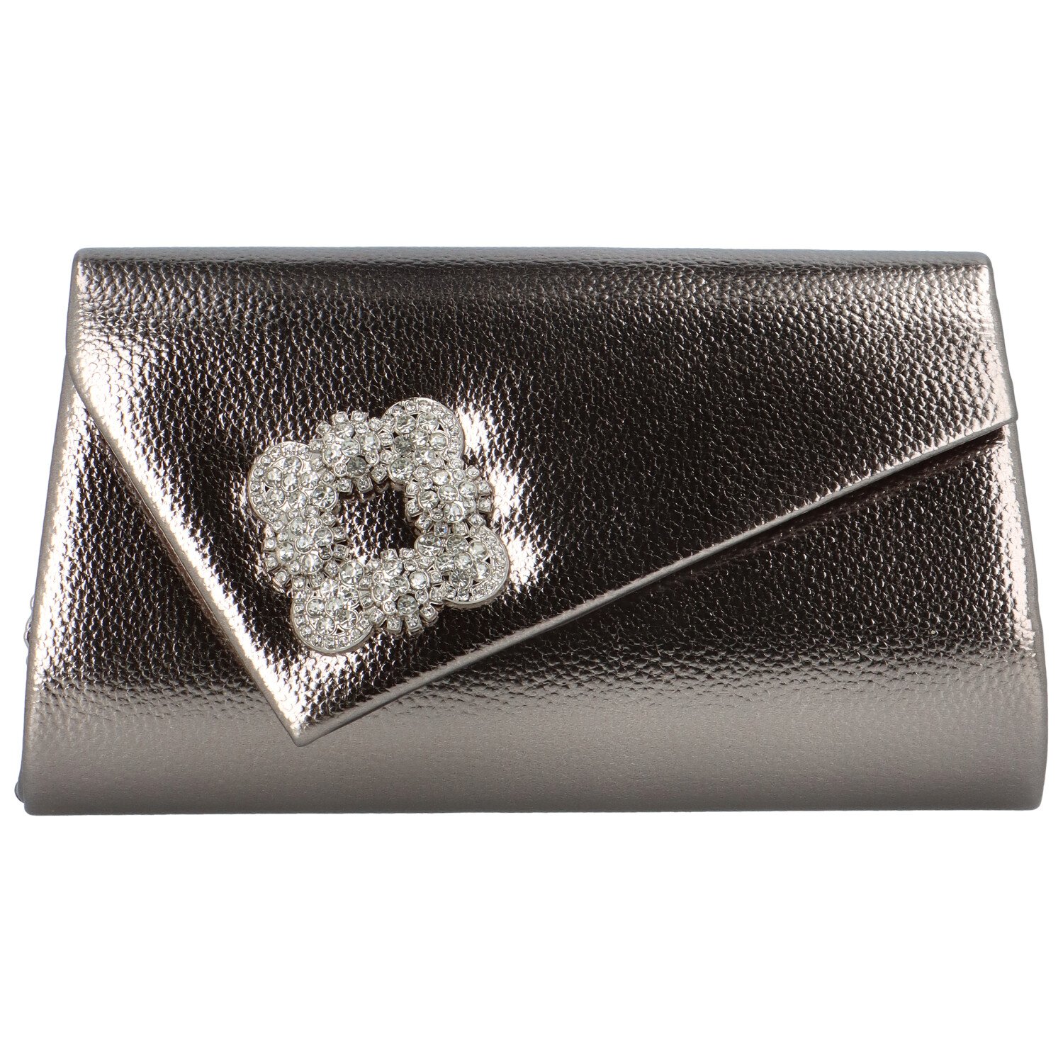 Stylový kousek, který perfektně doplní a rozzáří Váš večer. Psaníčko je pevné, velká klopa je asymetricky vykrojená a zdobí ji velká brož s třpytivými kamínky.