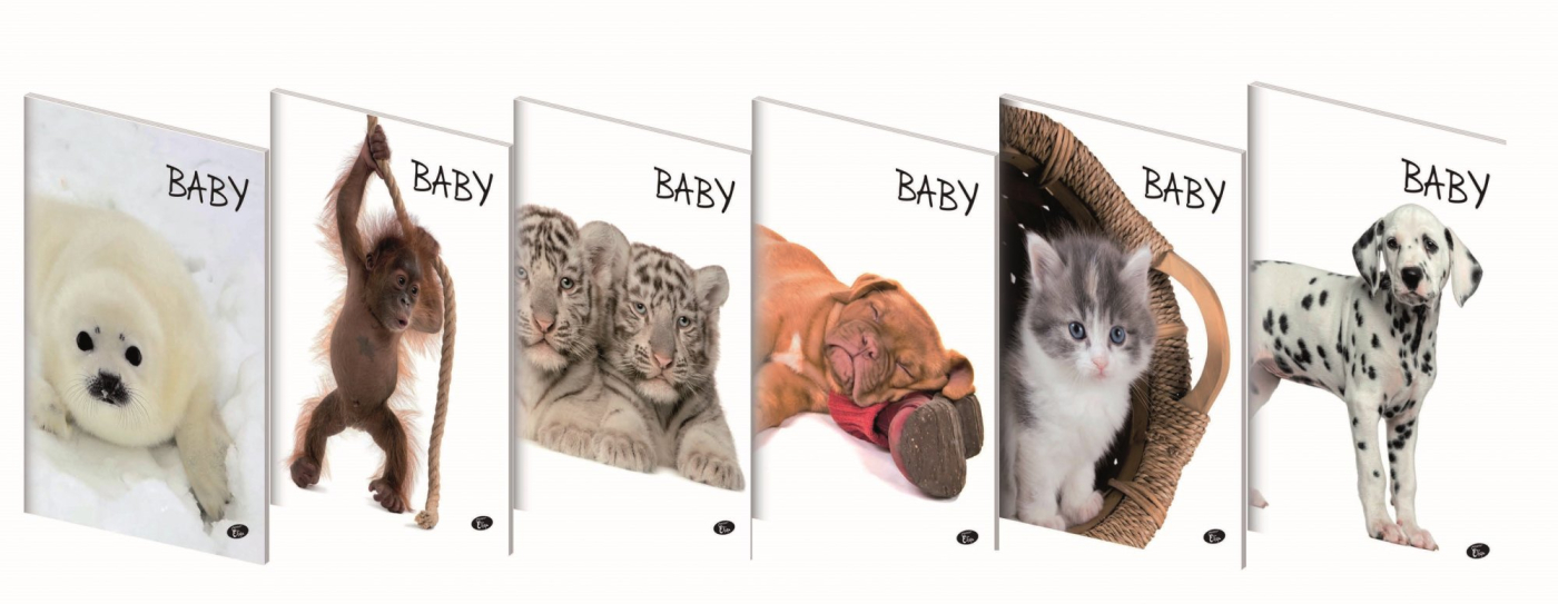 Fotografie roztomilých mláďat na bílém pozadí.formát: A5, 40 listů, linkovanýgramáž: 80 g/m2obálka: lesklá lakovaná obálkafotografie: 6 motivůvyrobeno: v EUobsah balení: 10 ks