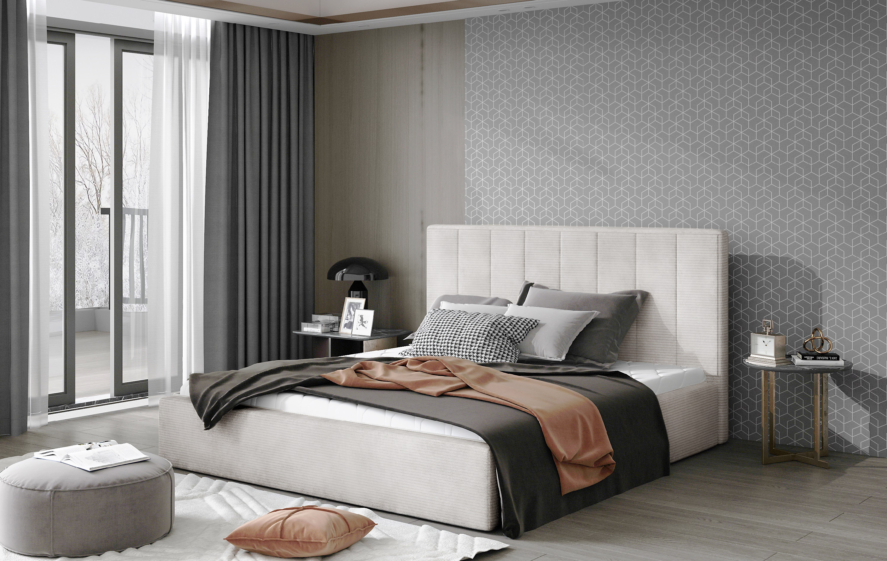 Postel Audrey Postel Audrey je svým designem považována za jednoduchý kus nábytku obohacený o vysoké čalouněné čelo, které plní nejen dekorativní funkci, ale díky svému rozměru se o něj můžete v klidu opřít a sledovat filmové klasiky z pohodlí z postele. Postel je dodávána s kovovým roštem, pod kterým se ukrývá úložný prostor. Matrace není součástí postele. • Úložné prostoryPostel je vybavena dvěma úložnými prostory, které se nacházejí pod každým lůžkem. Tyto prostory jsou snadno přístupné od nohou postele. Otevírání úložného prostoru je jednoduché a pohodlné díky kvalitním pružinám.  • Rozměry 44 cm výška lehací plochy 4 rozměry plocha na spaní 4 rozměry   celková šířka 223 cm celková délka 92 cm výška s čelem 250 kg nosnost 4 rozměry šířky / spací plocha 140 cm / 140 x 200 cm160 cm / 160 x 200 cm180 cm / 160 x 200 cm200 cm / 200 x 200 cm • Barevné provedeníPotahová látka Dora - pevná a měkká látka, sametová látka imitující kůži, snadno se čistí, velmi odolná proti oděruPotahová látka Kronos - měkká, příjemná na dotek a na světle se krásně třpytí, po přejetí rukou mění své uspořádání, odolná i proti žmolkováníPotahová látka Mat Velvet - velmi odolná, pevná a zároveň velmi měkká a příjemná na dotek, voděodolnáPotahová látka Monolith - příjemná látka s vysokou odolností, voděodolná, odolná proti vyblednutí a žmolkování, látka po přejetí rukou stínuje Potahová látka Omega - hladká, jemná, prodyšná, odolná proti oděru a pevnáPotahová látka Paros - označovaná jako sametová látka, látka po přejetí rukou stínuje, odolná proti roztažení a slunečnímu zářeníPotahová látka Soft - silná, pevná, nepružná a odolná eko kůže, měkká a na dotek příjemná s velmi sytým barevným provedenímPotahová látka Jarell je příjemná na dotek. Jarell je manšestrová látka s výraznými pruhy, které vytváří strukturovaný povrch. Látka má vysokou kvalitu, která vám vydrží několik let. Její originální textura dodá danému interiéru luxusní nádech a přitom zachová pocit tepla. • Postel Audrey - dřevěný rám posteleModerní a nadčasová postel Audrey je dostupná také ve variantě s dřevěným roštem. Postel vám nabídne maximální pohodlí.  Zobrazit produkt • Upozornění Látky prezentované na fotografiích jsou ilustračním materiálem, barvy se mohou lišit od vyobrazení na fotografiích podle nastavení vašeho zobrazovacího zařízení. Zboží dodáváme vlastní dopravou! Zboží rozvážíme také o víkendu. Dodáváme v demontu s podrobným instruktážním návodem.  Objednat si také můžete naše doplňkové služby jako je montáž na místě, výnos do patra a nebo ekologickou likvidaci starého nábytku. Zájem o služby přidejte do košíku v objednávce.  Ceník doplňkových služeb - výnos, ekolikvidace a montáž Montáž na místě Pokud se nechcete trápit s montáží, rádi Vám sestavíme nábytek na místě Výnos až do bytu Nechcete se tahat se zakoupeným zbožím? Rádi vám nábytek vyneseme až do bytu. Doprava Paul nábytek Zboží vám dopravíme až k domu naší vlastní dopravou, aby nedošlo k poškození cizím dopravcem. Ekologická likvidace Pokud si přejete, můžeme odvést starý nábytek a ekologicky jej nechat zlikvidovat.