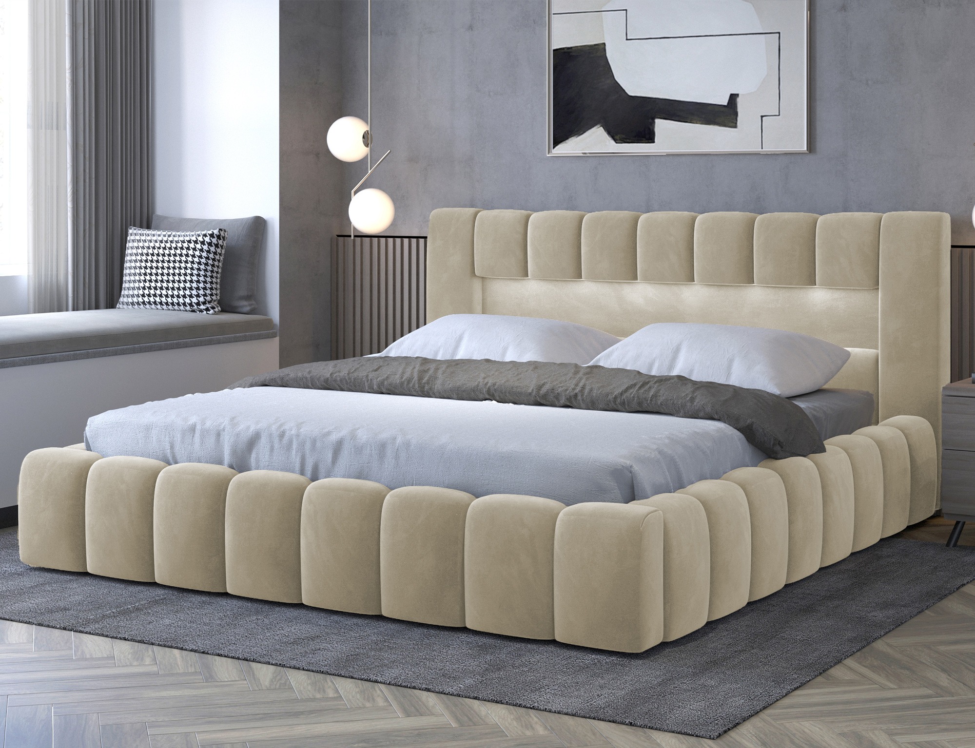 • Celočalouněná postel Lamica vynikne svým precizním provedením a nadčasovým elegantním vzhledem, který osloví i ty nejnáročnější zákazníky. Zaujme mimo jiné příjemně osvětleným čelem. Tato postel představuje celočalouněné dvoulůžko, které je k dispozici v šířkách 140/160/180 cm. Základ postele je zhotoven z kvalitní a pevné konstrukce, která zaručuje mimořádnou odolnost a stabilitu.Postel je dodávána BEZ MATRACE. • Vlastnosti Vysoké čelo s osvětlením Kovový rámCeločalouněný rám posteleŠiroký výběr barevPlynový zdvihÚložný prostor pod roštemBez matrace • Detail prošívání Osvětlení v čele • Rozměry 30 cm výška lehací plochy bez matrace 3 rozměry plocha na spaní 3 rozměry celková šířka 232 cm celková délka 90 cm výška s čelem 105 kg nosnost jednoho lůžka 3 rozměry šířky / spací plocha 162 cm / 140 x 200 cm182 cm / 160 x 200 cm202 cm / 180 x 200 cm • Potahová látka MonolithPotahovou látku Monolith řadíme mezi velurové tkaniny. Díky sametovému povrchu je látka hladká a velmi příjemná na dotek. Látka je odolná proti vyblednutí a žmolkování, po přejetí rukou stínuje.Kompletní vzorník potahové látky Monolith Monolith 9 Monolith 29 Monolith 37 Monolith 48 Monolith 63 Monolith 77 Monolith 84 Monolith 85 Monolith 97 Další varianty postele Lamica Postel Lamica - dřevěný rámModerní a nadčasová postel Lamica je dostupná také ve variantě s dřevěným rámem. Postel vám nabídne maximální pohodlí. Součástí postele je úložný prostor. Zobrazit produkt Postel Lamica 90 - dřevěný rám Zobrazit produkt Postel Lamica 90 - kovový rám Zobrazit produkt • Upozornění Látky prezentované na fotografiích jsou ilustračním materiálem, barvy se mohou lišit od vyobrazení na fotografiích podle nastavení vašeho zobrazovacího zařízení. Zboží dodáváme vlastní dopravou! Zboží rozvážíme také o víkendu. Dodáváme v demontu s podrobným instruktážním návodem.  Objednat si také můžete naše doplňkové služby jako je montáž na místě, výnos do patra a nebo ekologickou likvidaci starého nábytku. Zájem o služby přidejte do košíku v objednávce.  Ceník doplňkových služeb - výnos, ekolikvidace a montáž Montáž na místě Pokud se nechcete trápit s montáží, rádi Vám sestavíme nábytek na místě Výnos až do bytu Nechcete se tahat se zakoupeným zbožím? Rádi vám nábytek vyneseme až do bytu. Doprava Paul nábytek Zboží vám dopravíme až k domu naší vlastní dopravou, aby nedošlo k poškození cizím dopravcem. Ekologická likvidace Pokud si přejete, můžeme odvést starý nábytek a ekologicky jej nechat zlikvidovat.