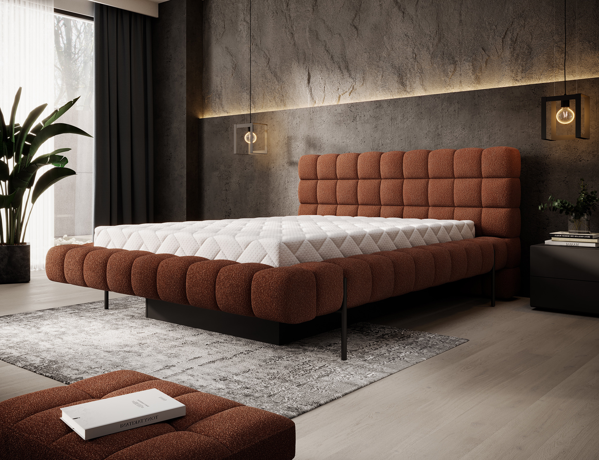 Postel Magentta Postel Magentta je svým designem považována za moderní nábytek, který je obohacený o vysoké čalouněné čelo s prošitím do "bochánků", které plní nejen dekorativní funkci, ale díky svému rozměru se o něj můžete v klidu opřít a sledovat filmové klasiky nebo si přečíst další kapitolu své oblíbené knížky.Je k dispozici hned ve třech rozměrech a v několika barevných variantách. Postel je dodávána s kovovým roštem, pod kterým se ukrývá úložný prostor. Matrace není součástí postele. • Vlastnosti: Kostra z dřeva a dřevotřískové deskyČelo vyplněno pěnou T2130Vysoké čalouněné čeloKovový rám posteleÚložný prostor - otevírání od nohou • • Úložný prostor Postel je vybavena úložným prostorem, který se nachází pod lůžkem. Prostor je snadno přístupný od nohou postele. Otevírání úložného prostoru je jednoduché a pohodlné díky kvalitním pružinám.  • Rozměry 44 cm výška lehací plochy bez matrace 3 rozměry plocha na spaní 3 rozměry celková šířka 244 cm celková délka 106 cm výška s čelem 90 kg nosnost jedné půlky postele 3 rozměry šířky / spací plocha 184 cm / 140 x 200 cm204 cm / 160 x 200 cm224 cm / 180 x 200 cm • Barevné provedeníPotahová látka Amore - látku řadíme mezi velurovou tkaninu. Je podobná plyši s krátkým vlasem, která se vyznačuje sametově jemným povrchem, snadno absorbuje vlhkost a rychle schnePotahová látka Jafray - látka je vyrobena ze 100% polyesteru - látka je dostatečně silná, pevná a odolná vůči oděru. Je velmi příjemná na dotek. Vyniká vysokou odolností proti světlu a žmolkování. Potahová látka Royal - příjemná na dotek, vysoká kvalita látky, elegantní vzhled - vyznačuje se velice jemným povrchem a měkkostí, dále je látka odolná a pevná. Pro údržbu a čistění používejte navlhčený hadřík a speciální prostředky pro čalouněný nábytek či mýdlovou voduPotahová látka Touch - látka je vyrobena ze 100% polyesteru, je měkká a velmi odolná proti oděru. Vyniká vysokou odolností proti světlu a žmolkování, je vhodná pro rodiny s dětmi Amore 20 Amore 35 Amore 38 Amore 40 Jafray 3 Jafray 30 Jafray 40 Royal 1 Royal 4 Royal 18 Royal 20 Touch 3 Touch 18 Touch 24 Touch 100 • Upozornění Látky prezentované na fotografiích jsou ilustračním materiálem, barvy se mohou lišit od vyobrazení na fotografiích podle nastavení vašeho zobrazovacího zařízení. Zboží dodáváme vlastní dopravou! Zboží rozvážíme také o víkendu. Dodáváme v demontu s podrobným instruktážním návodem.  Objednat si také můžete naše doplňkové služby jako je montáž na místě, výnos do patra a nebo ekologickou likvidaci starého nábytku. Zájem o služby přidejte do košíku v objednávce.  Ceník doplňkových služeb - výnos, ekolikvidace a montáž Montáž na místě Pokud se nechcete trápit s montáží, rádi Vám sestavíme nábytek na místě Výnos až do bytu Nechcete se tahat se zakoupeným zbožím? Rádi vám nábytek vyneseme až do bytu. Doprava Paul nábytek Zboží vám dopravíme až k domu naší vlastní dopravou, aby nedošlo k poškození cizím dopravcem. Ekologická likvidace Pokud si přejete, můžeme odvést starý nábytek a ekologicky jej nechat zlikvidovat.