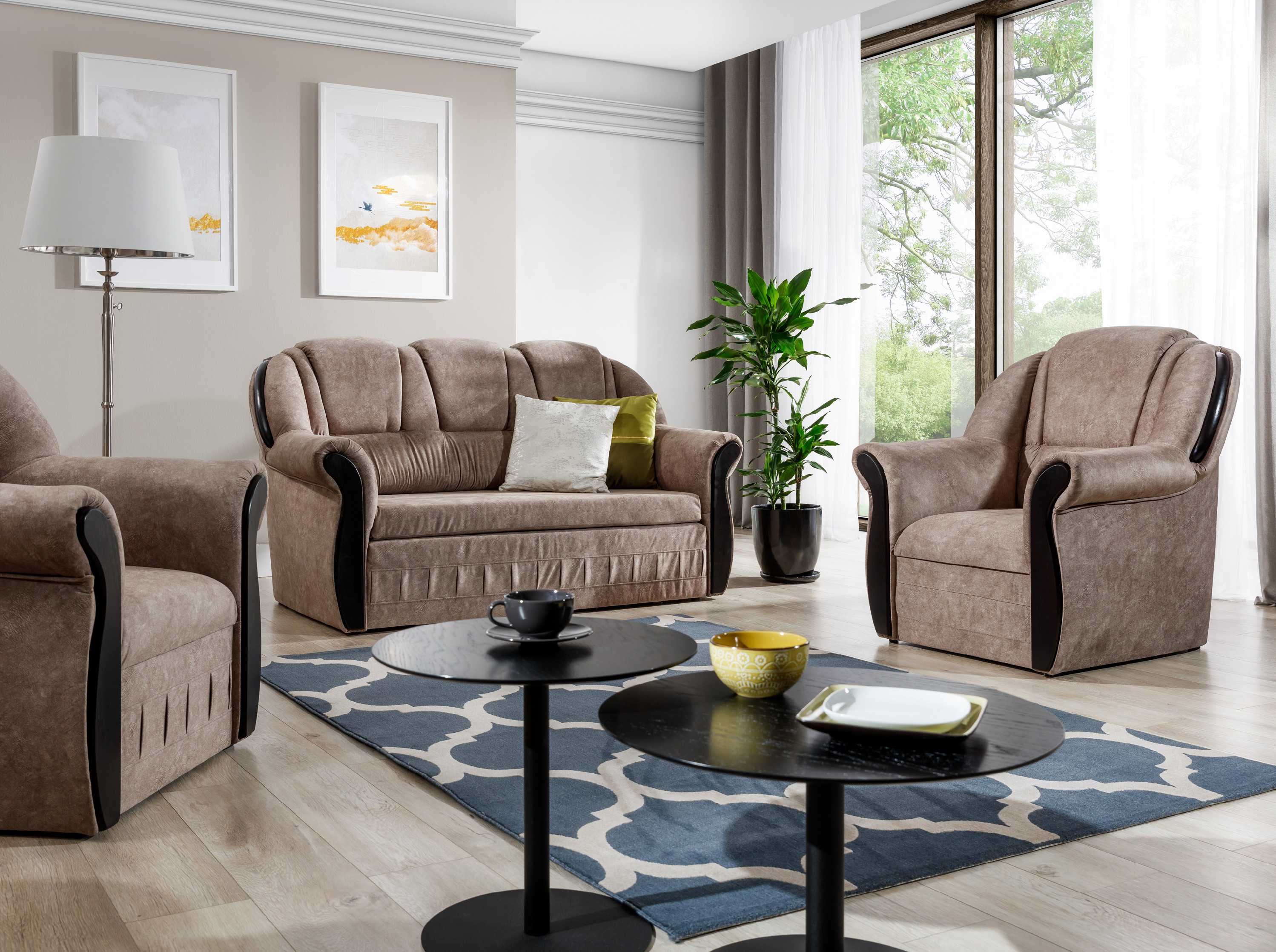 Sedací sestava Lord Masivní nábytek je zárukou dobrého odpočinku. Hledáte sestavu, která vám poskytne pohodlí a zároveň bude elegantní ozdobou vašeho obývacího pokoje? Sedací sestava Lord je ta pravá pro vás a vaší rodinu. Sestava obsahuje pohovku a dvě křesla. . Vlastnosti Konstrukce vyrobena v kombinaci dřeva a dřevotřískové deskySedák vyplněn pěnou T3040Opěradlo vyplněno pěnou T2542Nízké kluzákové černé nožičkyÚložný prostor v pohovceRozkládací plocha pro příležitostné přespání u pohovkyDesignové pruhy • Úložný prostor v pohovce Rozkládací plocha pohovky . Rozměr pohovky:Šířka180 cmVýška105 cmVýška sedu43 cmHloubka108 cmHloubka sedu55 cmSpací plocha135 x 185 cmRozměr křesla:Šířka96 cmVýška105 cmVýška sedu43 cmHloubka87 cmHloubka sedu55 cm . Barevné provedeníPotahová látka Dora - pevná a měkká látka, sametová látka imitující kůži, snadno se čistí, velmi odolná proti oděru Potahová látka Monolith - příjemná látka s vysokou odolností, voděodolná, odolná proti vyblednutí a žmolkování, látka po přejetí rukou stínuje Potahová látka Soft - silná, pevná, nepružná a odolná eko kůže, měkká a na dotek příjemná s velmi sytým barevným provedenímPotahová látka Texas - jedná se eko kůži (také koženka), látka je na dotek měkká, ale zároveň silná, flexibilní a odolná. Údržba je snadná - stačí otřít lehce navlhčeným hadříkem - mohla by popraskat Dora 22 Monolith 9 Soft 33 Soft 66 Texas 23 Další komponenty a varianty sestavy Lord Zaujala vás sedací souprava Lord a chtěli by jste si pořídit celou sestavu, která bude obsahovat sedačku, trojsedák a křeslo.Sedací souprava LordSedací souprava Lord IISedací sestava Lord 3+1+1Křeslo Lord 1F Upozornění Látky prezentované na fotografiích jsou ilustračním materiálem, barvy se mohou lišit od vyobrazení na fotografiích podle nastavení vašeho zobrazovacího zařízení. Zboží dodáváme vlastní dopravou! Zboží rozvážíme také o víkendu. Dodáváme v demontu s podrobným instruktážním návodem. Objednat si také můžete naše doplňkové služby jako je montáž na místě, výnos do patra a nebo ekologickou likvidaci starého nábytku. Zájem o služby přidejte do košíku v objednávce. Ceník doplňkových služeb - výnos, ekolikvidace a montáž Montáž na místě Pokud se nechcete trápit s montáží, rádi Vám sestavíme nábytek na místě Výnos až do bytu Nechcete se tahat se zakoupeným zbožím? Rádi vám nábytek vyneseme až do bytu. Doprava Paul nábytek Zboží vám dopravíme až k domu naší vlastní dopravou, aby nedošlo k poškození cizím dopravcem. Ekologická likvidace Pokud si přejete, můžeme odvést starý nábytek a ekologicky jej nechat zlikvidovat.