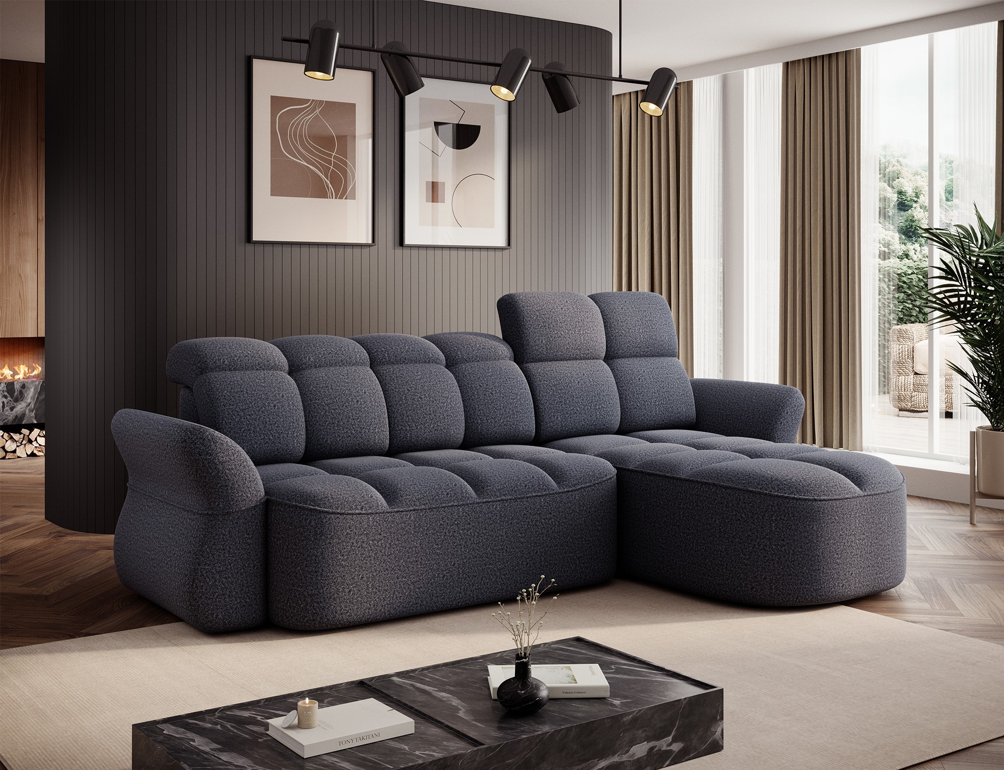 Sedací souprava Beneth Rohová sedací souprava Beneth je moderního kus nábytku s charakterem, který si získá vaši pozornost. Díky elektrickému mechanismu si polohu sedáku snadno nastavíte podle svých preferencí. Kromě toho je součástí i menší úložný prostor. • Vlastnosti Kostra z dřeva a dřevotřískové deskyNa výplň jsou použity pružiny faliste typu B spolu HR pěnou T3030 + T2315Elektrický výsun - zapojení do zásuvky 230VTvar do písmene LÚložný prostorPolohovatelné opěrky hlavy • Úložný prostor Plocha pro příležitostné přespání • Rozměry 301 cm celková šířka 100 - 115 cm  výška s opěrkami hlavy 185 cm celková hloubka 91 cm šířka otomanu 55 - 81 cm hloubka sedáku 49 cm výška sedu 35 cm šířka loketní opěrky Počet kusů sedací soupravy Beneth1. 175 x 105 x 95 cm - cca 90 kg2. 175 x 115 x 100 cm - cca 95 kgJedná se o odhadované rozměry + - 5 cm / kg s ohledem na balení daného kusu. • Barevné provedení Potahová látka Breona - Jedná se o hrubší látka, která je dostupná v základních odstínech. Výhodou látky je její voděodolnost a také je vhodná pro rodiny s dětmi. Látka je vyrobena ze 100% polyesteru.Potahová látka Monolith - Potahovou látku Monolith řadíme mezi velurové tkaniny, někdy je látka přirovnávaná k plyši. Díky sametovému povrchu je látka hladká a velmi příjemná na dotek. Látka je vyznačuje vysokou odolností, také odolností proti vyblednutí a žmolkování. Látka po přejetí rukou stínuje, vytváří mapičky. Látka je vhodná pro rodiny s domácími mazlíčky. Tkanina je ošetřena ochrannou vrstvou, která vytvoří voděodolný povrch. Látka tak odpuzuje vodu a vytvoří kapičky na povrchuPotahová látka Nube - Látka NUBE je pevná a odolná. Na pohled má látka hladký povrch s odleskem a na dotek je velice příjemná. Výhodou látky je povrchová úprava tzv. Waterproof, která zabraňuje prosakování tekutiny, látka je tedy voděodolná. Látku tak postačí otřít hadříkem nebo papírovou utěrkou.Potahová látka Paolli - Látka je vyrobena ze 100 % polyesteru, přesto je však příjemná na dotek a vzhledově elegantní. Výhodou látky je její voděodolnost, kterou ocení především rodiny s dětmi. Látka na první pohled může připomínat koberec.Potahová látka Royal - Látka ROYAL je čalounická látka se strukturou připomínající pleteninu. Tento materiál je příjemný a jemný na dotek. Disponuje speciálním zpevňujícím podkladem, který zabraňuje nežádoucímu roztažení.Potahová látka Space - Látka SPACE je odolná tkanina, která je vhodná jak pro postele, tak i sedací soupravy. I přes svůj hrubší dojem je látka příjemná na dotek a každý kontakt s ní bude tak čiré potěšení. Díky její voděodolné vlastnosti se nemusíte nasáknutí tekutiny při nechtěném vylití.  Breona 4 Breona 30 Breona 45 Monolith 4 Nube 20 Paolli 1 Royal 18 Space 3 Space 40 •