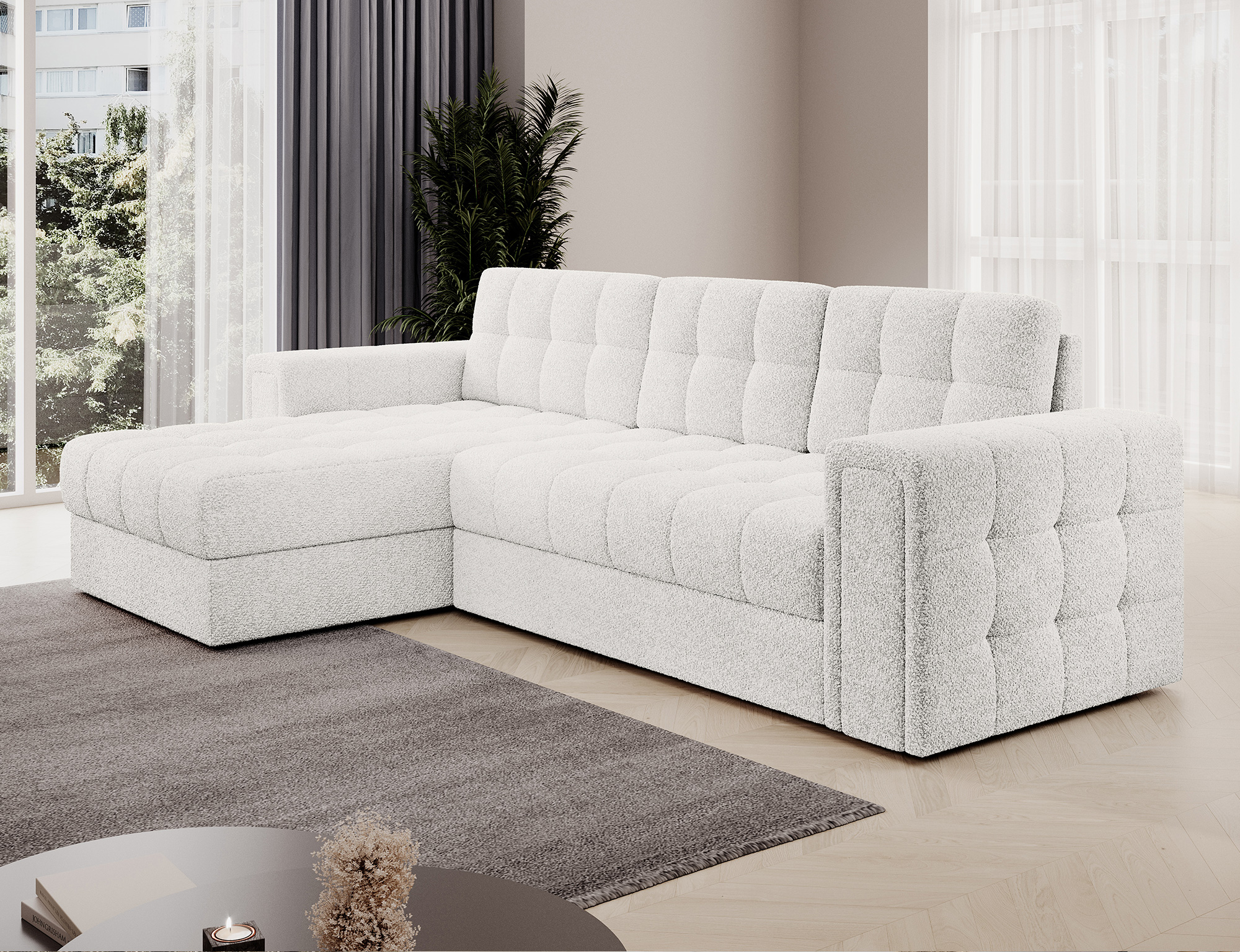 Sedací souprava Blenvi Rohová sedací souprava Blenvi je moderní s univerzálním rohem, kdy si sami zvolíte stranu sedací soupravy. Stylový design v moderní estetice dokonale zapadne do různých interiérů vašeho domova, ale i do společenských prostor. Sedací souprava Blenvi navíc disponuje úložným prostorem a rozkladem pro příležitostné přespání.  • Vlastnosti Kostra ze dřeva a dřevotřískové deskyNa výplň jsou použity pružiny Faliste spolu s pěnou T2540Sedací souprava je univerzální - stranu si vyberete podle návodu při montážiÚložný prostor v otomanuRozklad pro příležitostné přespáníČalouněná záda • Úložný prostor Rozkládací plocha pro příležitostné spaní Prošívané područky Volné opěrné polštáře • Rozměry 260 cm celková šířka 82 cm  výška s opěrkami hlavy 150 cm celková hloubka 123x212 cm plocha na spaní 80 cm šířka otomanu 56 cm hloubka sedáku 42 cm výška sedu 24 cm šířka loketní opěrky 2,5 cm výška nožek Počet kusů sedací soupravy Blenvi1. 150 x 80 x 85 cm - cca 50 kg2. 132 x 90 x 85 cm - cca 40 kgJedná se o odhadované rozměry + - 5 cm / kg s ohledem na balení daného kusu.Podrobné instruktážní návodyv odkazu níže ke stažení↓↓↓>>   Montážní návod pro levou variantu    Montážní návod pro pravou variantu