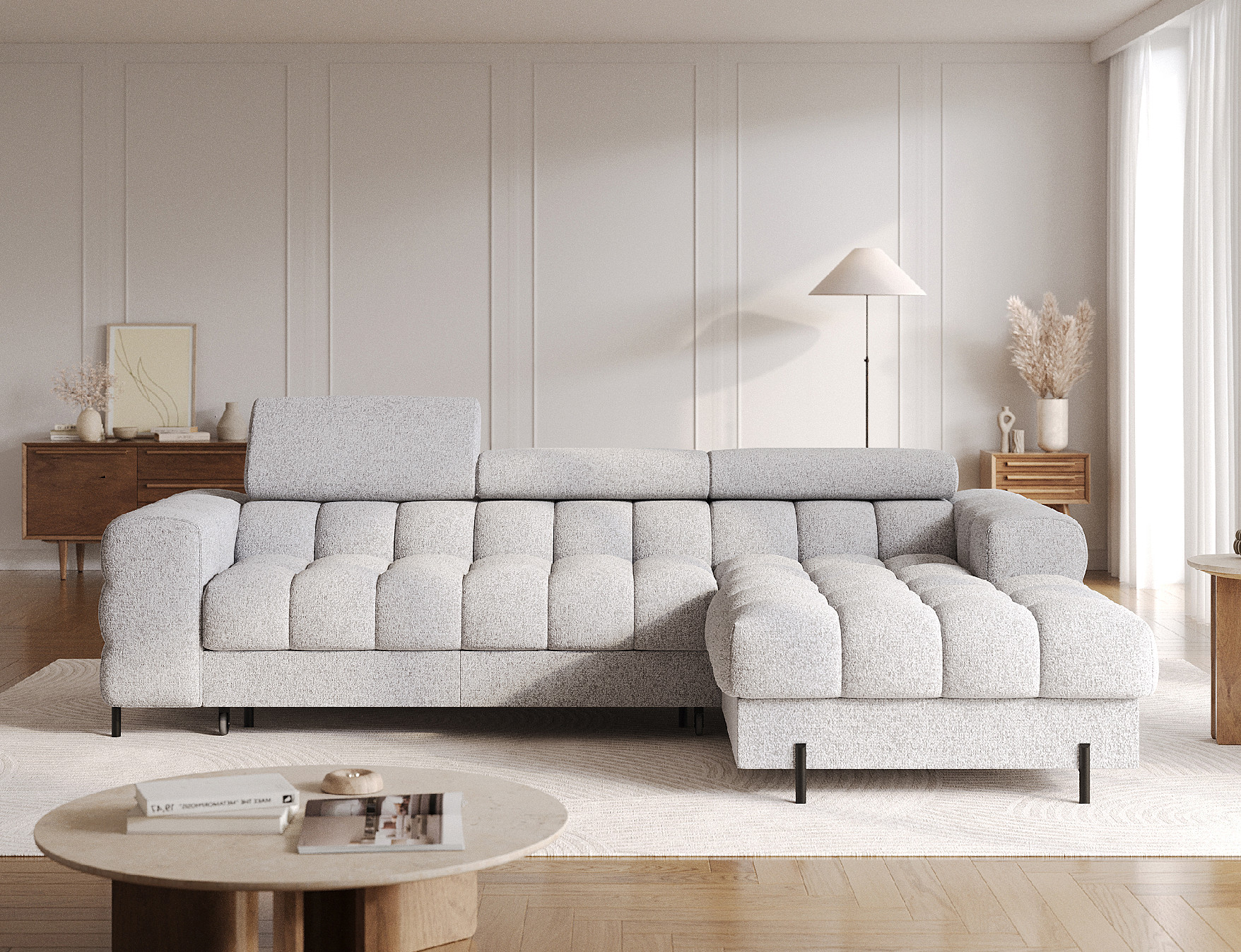 Sedací souprava Felro Hledáte pohodlnou a stylovou sedací soupravu? Rozkládací rohová sedací souprava Felro se bude skvěle hodit do každého domova! Sedačka zajistí, že vaši blízcí budou mít každý den kde odpočívat a rodinná setkání dostanou nový rozměr. • Vlastnosti Polohovatelné opěrky hlavyRozklad pro příležitostné spaní - není očalouněnáÚložný prostor v otomanuČalouněná zádaPružiny Faliste typu BSedák je vyplněn vysoce elastickou HR pěnou 3030 a pěnou T3030Opěrka zad vyplněna pěnou T2130 • • Rozkládací plochaRozkládací ložná plocha je příjemná při denním odpočinku, ale je vhodná i na příležitostné přespávání. Sedací souprava se rozkládá klasickým vysunutím spodního dílu a následným vytažením směrem nahoru.Úložný prostorDalší nedílnou a důležitou součástí sedací soupravy je úložný prostor, který se vám naskytne po nadzvednutím prodloužené sedací části.  • Rozměry 285 cm celková šířka 72 - 99 cm  výška s opěrkami hlavy 181 cm celková hloubka 123 x 222  cm plocha na spaní 112 cm šířka otomanu 53 cm hloubka sedáku 45 cm výška sedu 30 cm šířka loketní opěrky 9 cm výška nožek Počet kusů sedací soupravy Felro1. 185 x 110 x 79 cm - cca 87 kg2. 178 x 103 x 67 cm - cca 74 kgJedná se o odhadované rozměry + - 5 cm / kg s ohledem na balení daného kusu. • Barevné provedeníPotahová látka Royal -  Na dotek je to příjemná látka, která má vysokou kvalitu a elegantní vzhled. Vyznačuje se velice jemným povrchem a měkkostí, dále je látka odolná a pevná. Pro údržbu a čistění používejte navlhčený hadřík a speciální prostředky pro čalouněný nábytek či mýdlovou vodu.Potahová látka Aura - Látka je vyrobená ze 100% polyesteru, je jemně tkaná s viditelnou strukturou vláken. Také je pevná, odolná a zároveň hebká a příjemná na dotek. Potahová látka Amore - Látku řadíme mezi velurovou tkaninu. Je podobná plyši s krátkým vlasem, která se vyznačuje sametově jemným povrchem, snadno absorbuje vlhkost a rychle schnePotahová látka Sola - lesklý vzhled a jemná vazba, pevná a odolná proti oděru, nebledne bez stínového efektu po přejetí rukou Potahová látka Pellerito - jedná se o hrubou látku, která je odolná vůči oděru i světlu. Typickým znakem je proplétání jednotlivých nití, které vytvoří zajímavou vazbu. Royal 1 Royal 20 Aura 18 Aura 40 Amore 1 Amore 35 Pellerito 3 Sola 6 •