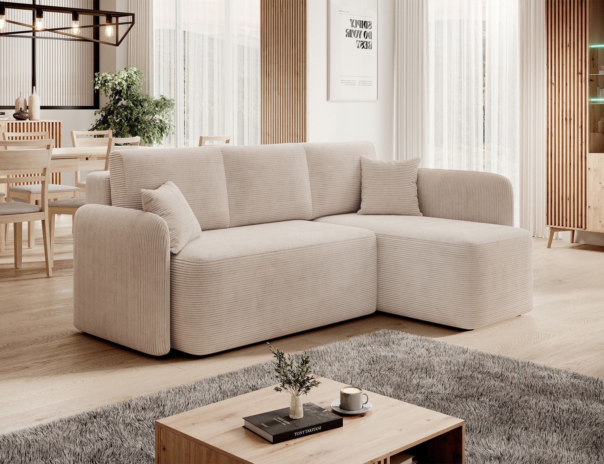 Sedací souprava Hadson Jedinečná sedací souprava Hadson je ideální volbou pro každého, kdo hledá maximální komfort a styl i v omezených prostorách. S jejím netradičním designem si okamžitě získá pozornost a stane se centrálním bodem vašeho obývacího pokoje. Navíc nabízí praktický úložný prostor pro všechny vaše potřeby a možnost rozložení, což z ní dělá perfektní místo pro odpočinek či příležitostné přespání. • Vlastnosti Konstrukce z dřeva a dřevotřískové deskySedák vyplněn HR pěnouOpěradlo vyplněno pěnou T2542Volně ložené opěrné polštářeČalouněná zádaÚložný prostor Rozklad pro příležitostné spaníNízké kluzákové nožičky Rozklad na prostorné lůžko Praktický úložný prostor Detail otomanu Detail opěru Detail područky • Rozměry 206 cm celková šířka 89 cm  výška s opěrkami hlavy 150 cm celková hloubka 115x184 cm plocha na spaní 60 cm šířka otomanu 77 cm Výška bez opěrek hlavy 49-69 cm hloubka sedáku 47 cm výška sedu 11 cm šířka loketní opěrky Počet kusů sedací soupravy Hadson1. 155x65x75 cm - cca 54 kg2. 135x65x78 cm - cca 64 kgJedná se o odhadované rozměry + - 5 cm / kg s ohledem na balení daného kusu.Podrobný instruktážní návod v odkazu níže ke stažení↓↓↓>>   Montážní návod
