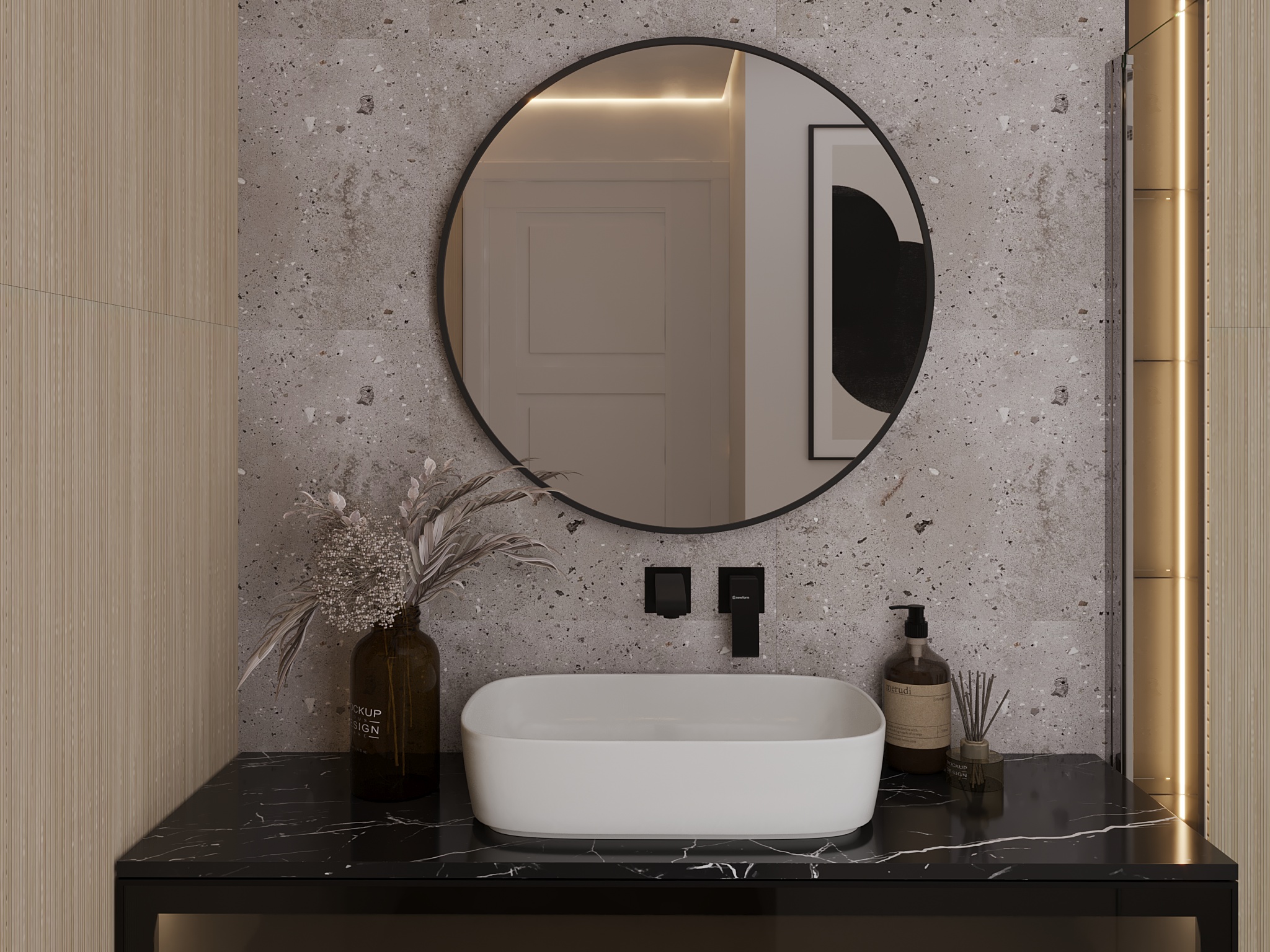 Zrcadlo Divissi Kulaté zrcadlo Divissi je dostupné ve dvou rozměrech a ve třech variantách. Varianta bez osvětlení nebo dvě varianty osvětlení. • Zrcadlo Divissi rozměr 80 cm bez osvětlení Zrcadlo Divissi rozměr 60 cm s osvětlením A Zrcadlo Divisi rozměr 80 cm s osvětlením L • Vlastnosti zrcadla: Materiál Zrcadlo je vyrobeno z MDF desky a zrcadla. Snadná montáž Zrcadlo snadno upevníte na stěnu díky kovovým háčkům. Osvětlení Zrcadlo je dostupné ve variantě bez osvětlení nebo s osvětlením, kdy je zrcadlo napájeno ze zásuvky. IP ochrana Zrcadlo má ochranu IP 21, díky tomu je odolné proti kondenzaci vlhkosti a pádům. • Rozměry zrcadla:Průměr:Hloubka:60 / 80 cm3 cm • Detail rámu bez osvětlení Detail osvětlení A • Umístění zrcadlaZrcadlo se stane nedílnou součástí vašeho každodenního života, ať už bude zrcadlo umístěno v koupelně, předsíni nebo šatně. •