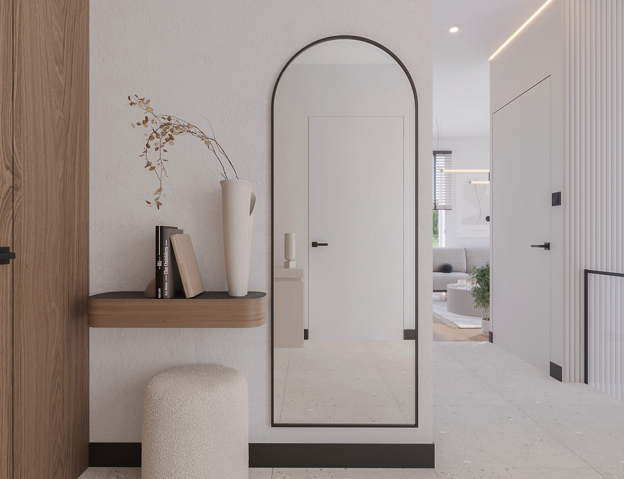 Zrcadlo Divva Zrcadlo Divva je elegantním doplňkem do obývacího pokoje, ložnice nebo předsíně. Poskytne plný obraz a opticky zvětší prostor. • Vlastnosti zrcadla: Materiál Zrcadlo je vyrobeno z hliníkové desky a zrcadla. Barevná varianta rámu Decentní rám zrcadla je v černé barvě. Snadná montáž Zrcadlo snadno upevníte na stěnu díky kovovým háčkům. • Rozměry zrcadla:Šířka:60 cmVýška:160 cmHloubka:2,5 cmVáha: 9 kg • Umístění zrcadlaZrcadlo se stane nedílnou součástí vašeho každodenního života, ať už bude zrcadlo umístěno v koupelně, předsíni nebo šatně. •