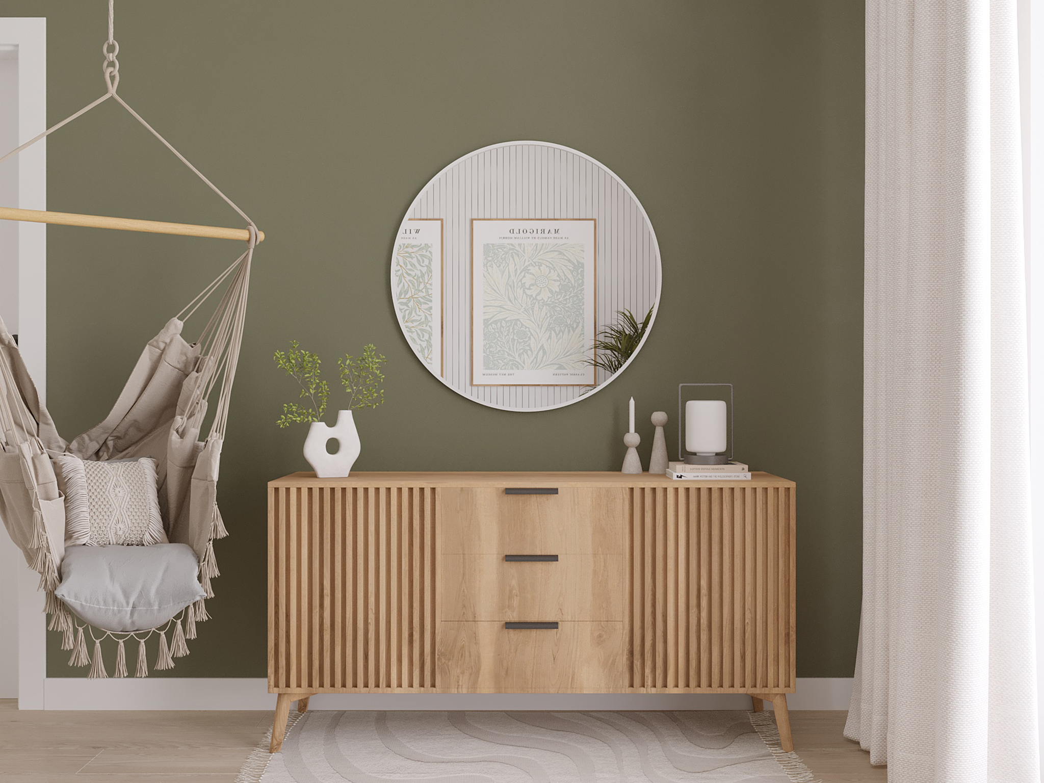 Zrcadlo Elistul Kulaté zrcadlo Elistul je dostupné ve dvou rozměrech a ve variantě s nebo bez osvětlení. • Zrcadlo Elistul rozměr 80 cm bez osvětlení Zrcadlo Elistul rozměr 60 cm s osvětlením A • Vlastnosti zrcadla: Materiál Zrcadlo je vyrobeno z hliníkové desky a zrcadla. Snadná montáž Zrcadlo snadno upevníte na stěnu díky kovovým háčkům.  Osvětlení Zrcadlo je dostupné ve variantě bez osvětlení nebo s osvětlením, kdy je zrcadlo napájeno ze zásuvky (15 W). IP ochrana Zrcadlo má ochranu IP 45, která zaručuje účinnou ochranu proti vlhkosti a většině pevných znečišťujících látek. • Rozměry zrcadla:Průměr:Hloubka:60 / 80 cm3 cm • Detail rámu bez osvětlení Detail osvětlení A • Umístění zrcadlaZrcadlo se stane nedílnou součástí vašeho každodenního života, ať už bude zrcadlo umístěno v koupelně, předsíni nebo šatně. •
