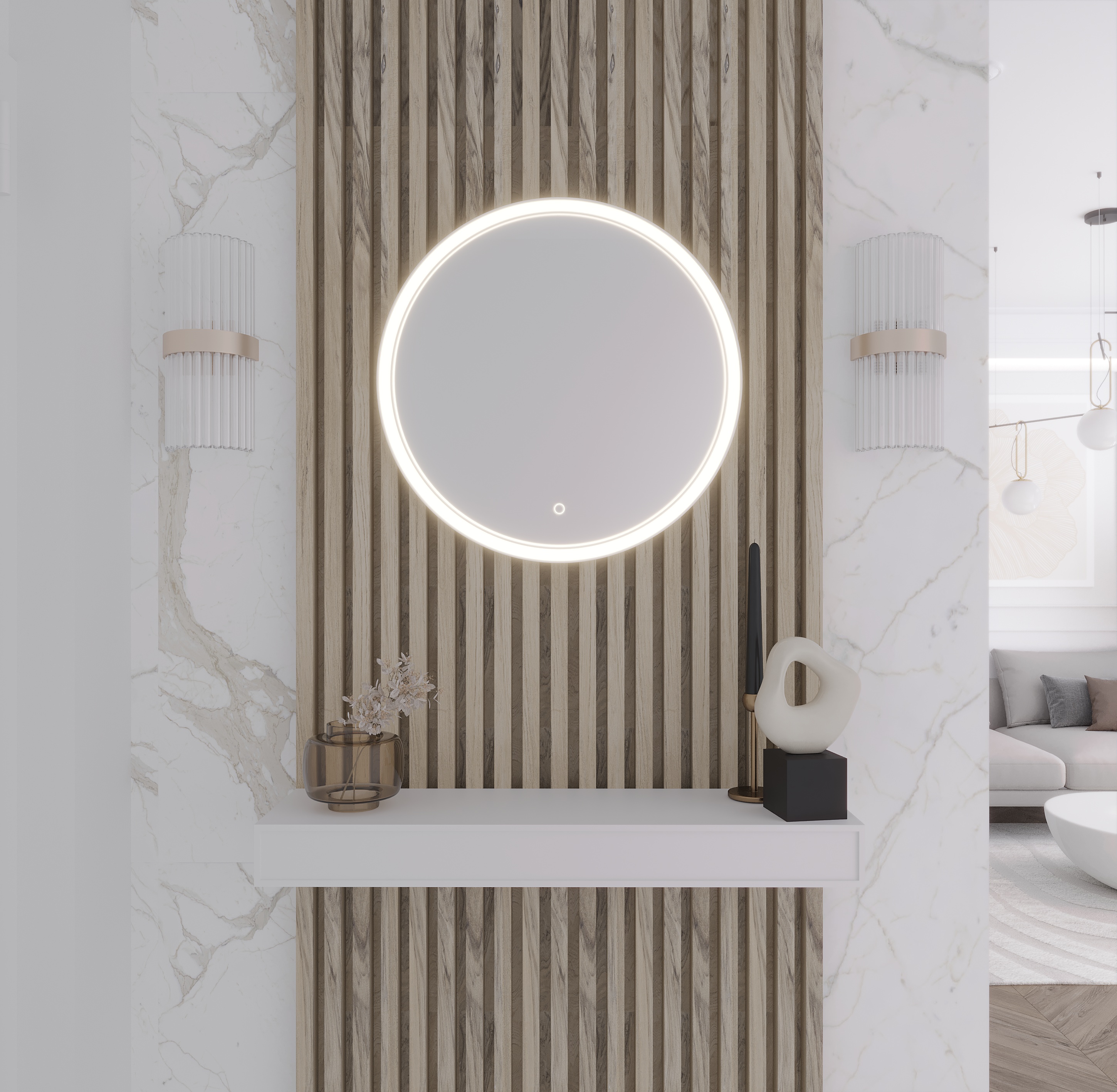 Zrcadlo Orandiu Designové kruhové zrcadlo Orandiu zaujme moderním designem a funkcí osvětlení. Jeho tvar dodá místnosti jemnost a zároveň ji opticky zvětší. • Osvětlení A Osvětlení L • Vlastnosti zrcadla: Materiál Zrcadlo je vyrobeno z MDF desky a zrcadla. Snadná montáž Zrcadlo snadno upevníte na stěnu díky kovovým háčkům. Osvětlení Zrcadlo je dostupné ve variantě s osvětlením, kdy je zrcadlo napájeno ze zásuvky. IP ochrana Zrcadlo má ochranu IP 21, díky tomu je odolné proti kondenzaci vlhkosti a pádům. • Rozměry zrcadla:Průměr:Hloubka:60 / 80 cm4 cm • Osvětlení A Osvětlení L • Umístění zrcadlaZrcadlo se stane nedílnou součástí vašeho každodenního života, ať už bude zrcadlo umístěno v koupelně, předsíni nebo šatně. •