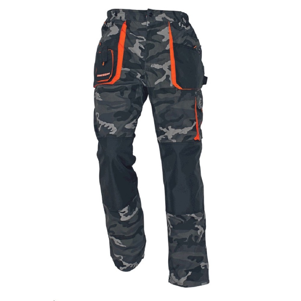 Montérkové kalhoty pasové EMERTON CAMOUFLAGE, 270g/m2 - kalhoty do pasu s multifunkčními kapsami, zesílením na kapsách a kolenou smožností vložení kolenních výztuh. Materiál: 65% polyester, 35% bavlna, 270g/m2, zesílení -600D polyester/PU